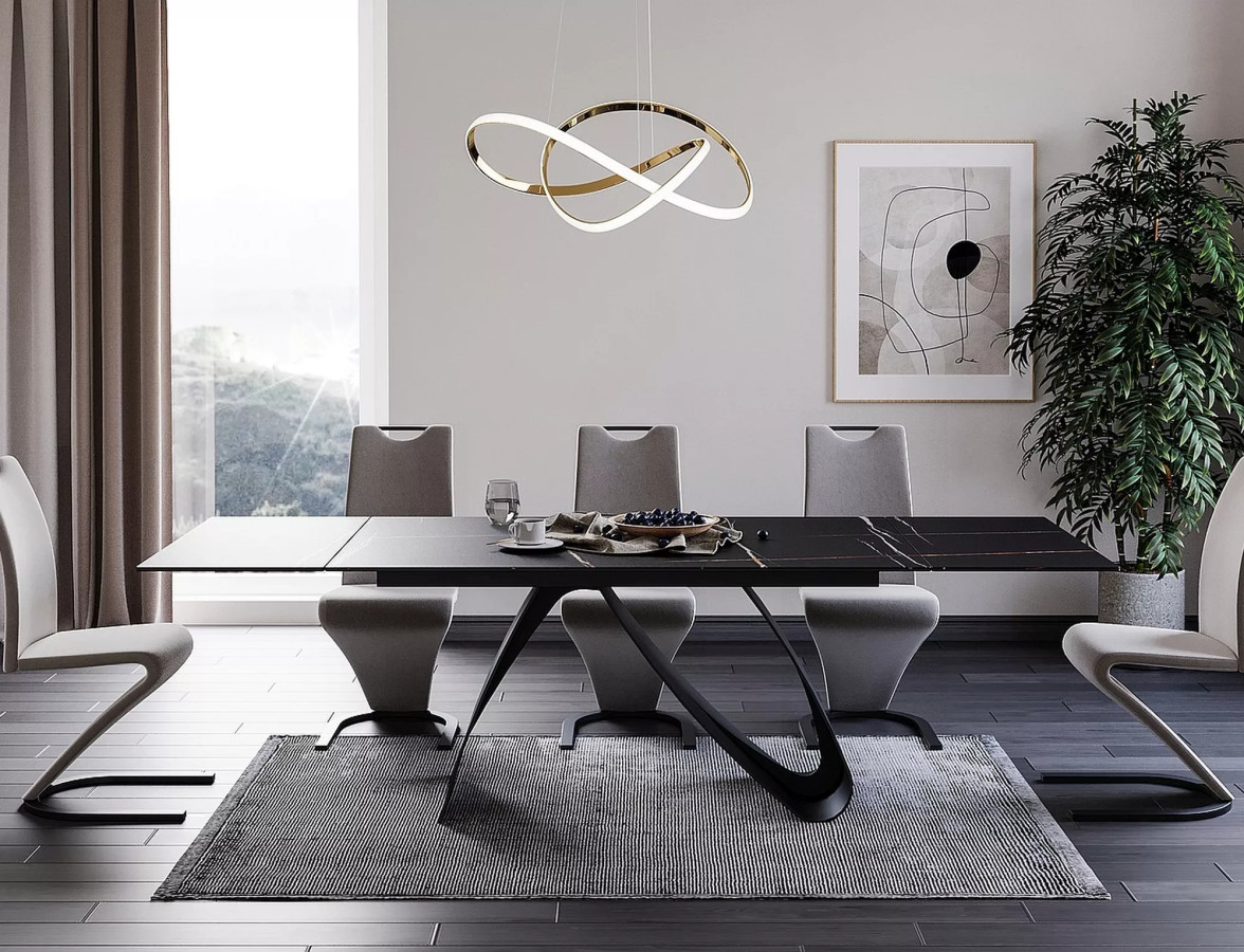 Kombinace tvrzenného skla a kovové konstrukce v černém matném provedení zajišťuje mimořádnou stabilitu. Stůl je postaven tak, aby vydržel každodenní používání bez známek opotřebení. Výška 77 cm odpovídá ergonomickým standardům pro maximální pohodlí při sezení.