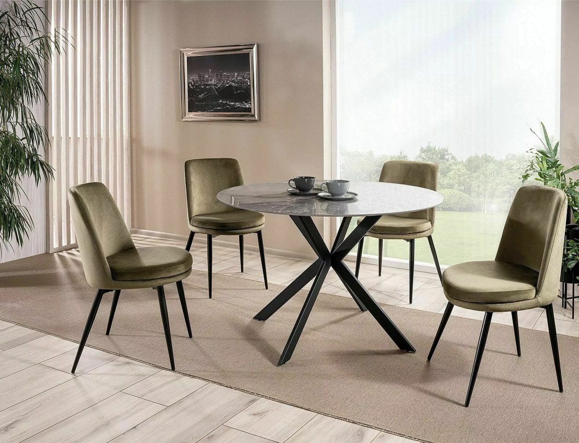 Tento stůl se snadno kombinuje s různými typy židlí i dekorací. Zkuste k němu přidat například čalouněné židle pro luxusní vzhled nebo kovové židle pro industriální vibe.