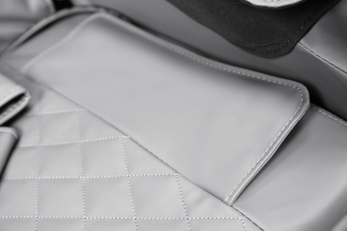 Potah z kvalitní eko kůže v elegantní krémově-šedé kombinaci je příjemný na dotek, odolný a snadno se udržuje – stačí otřít vlhkým hadříkem. Moderní design křesla se hladce začlení do každého interiéru.