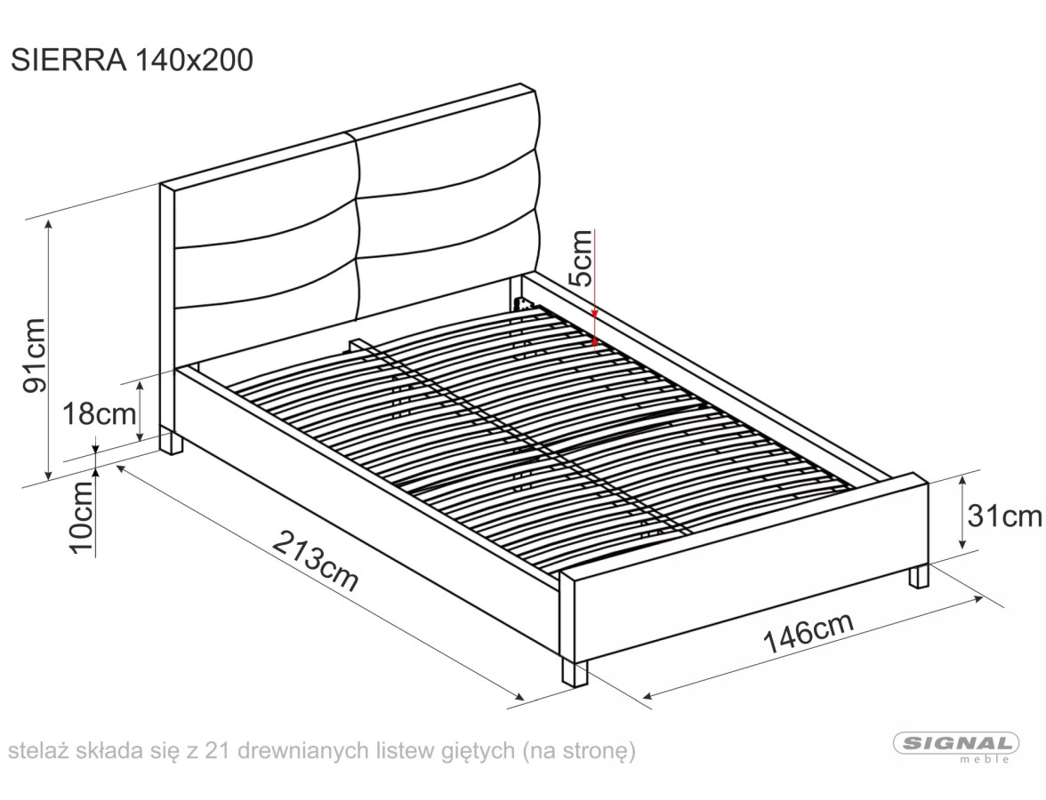 Rozměry pro matraci: 140 × 200 cm Cena je uvedena bez matrace – můžete si tak vybrat přesně takovou, která vyhovuje vašim preferencím tvrdosti a komfortu.