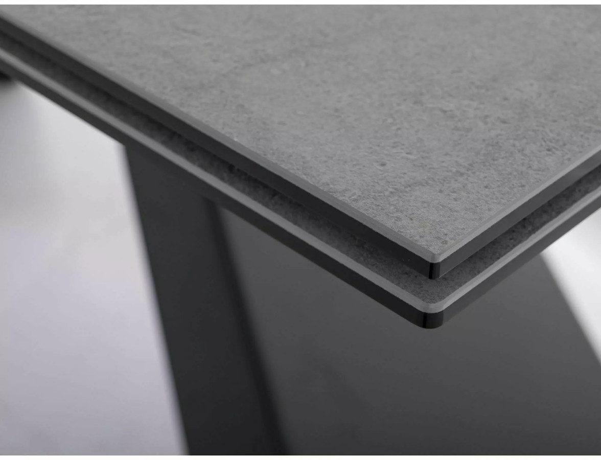 Westin keramický stůl je inspirován italským designem, který je známý svou elegancí a smyslem pro detail. Kombinace světle šedé desky Pietra Di Savoia a černých zkřížených nohou vytváří luxusní kontrast, díky kterému tento stůl zapadne do každého interiéru – od klasického po loftový nebo industriální.