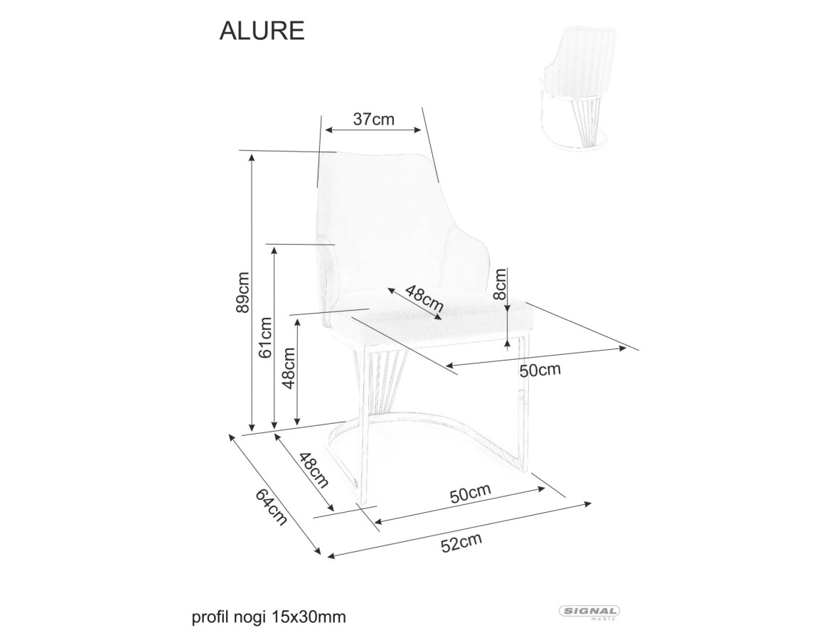 Rozměry: Výška: 89 cm Výška sedu: 48 cm Šířka: 52 cm Hloubka: 48 cm