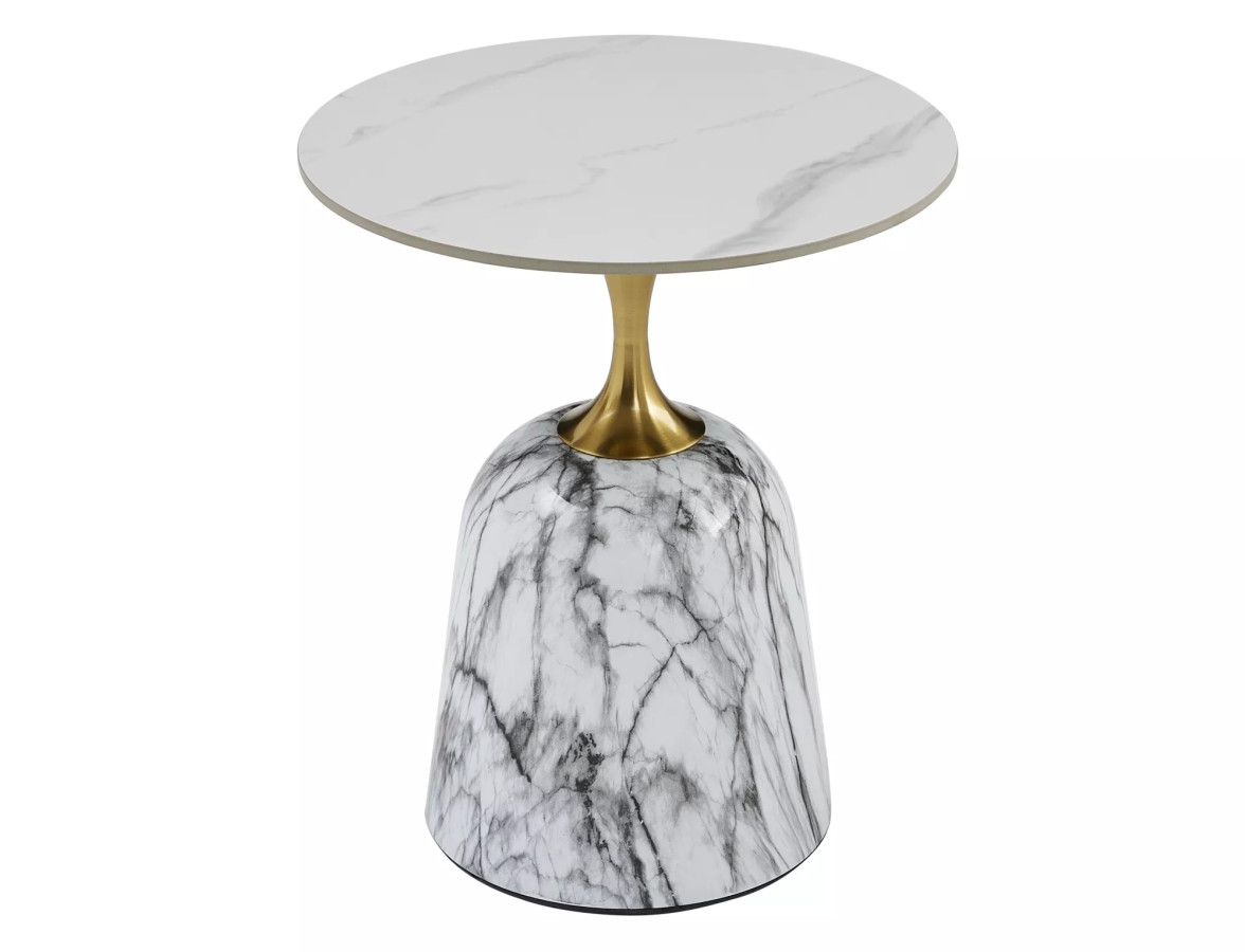 Kovová konstrukce v kombinaci bílé a zlaté barvy dodává stolku ten správný šmrnc. Zlaté akcenty elegantně kontrastují s čistou bílou a mramorovou deskou – vytváří dokonalou harmonii mezi moderním a klasickým designem.