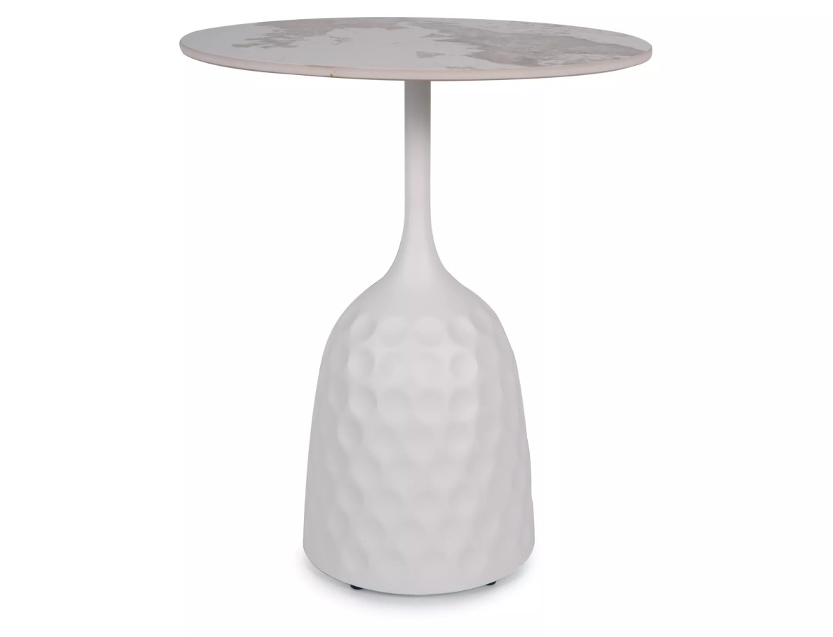 Bílý lesklý povrch v kombinaci s matným bílým kovovým podstavcem vytváří sofistikovanou hru textур a odlesků. Za dne zachytává přirozené světlo, večer září v osvětlení lampy. Každým pohledem odhalíte nový detail.