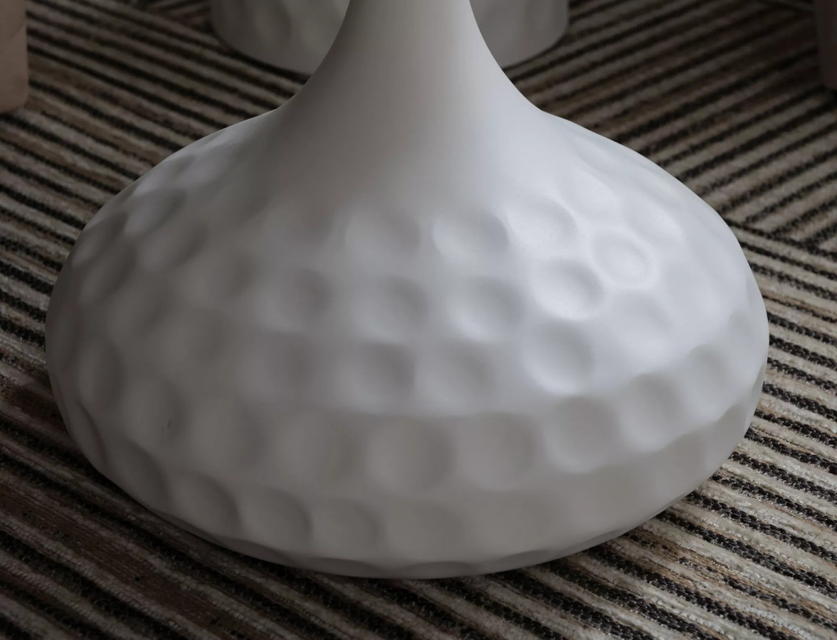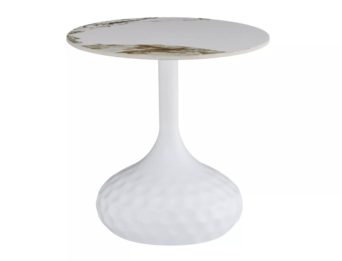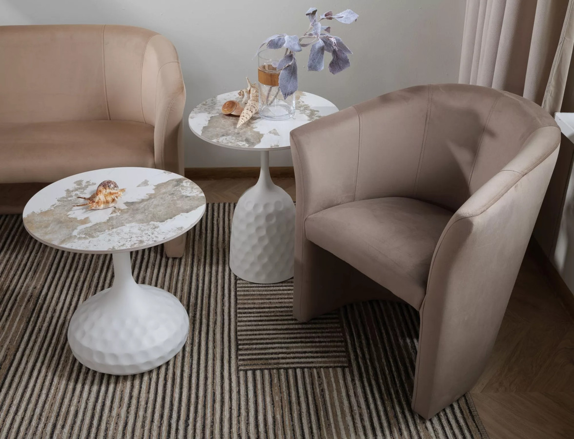 Kovový podstavec v matně bílé barvě vytváří elegantní kontrast s lesklým mramorovým efektem desky. Tato kombinace není náhodná – jde o promyšlené spojení, které funguje v každém moderním i klasickém interiéru. Ať máte doma skandinávský minimalismus, moderní glamour nebo nadčasovou eleganci, tento stolek se přizpůsobí.