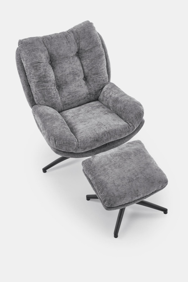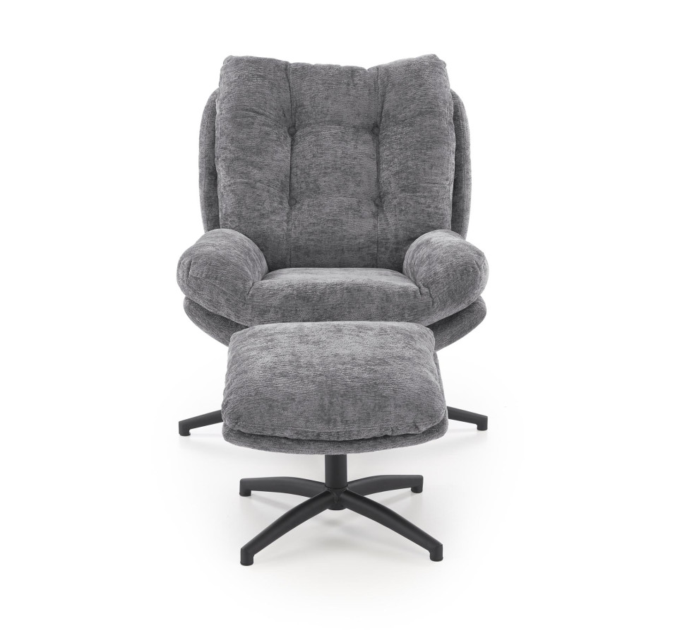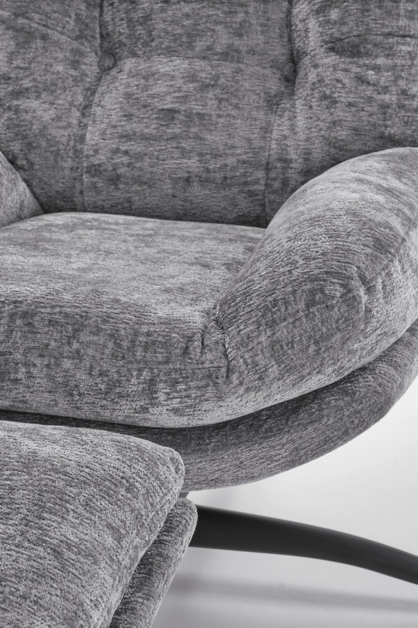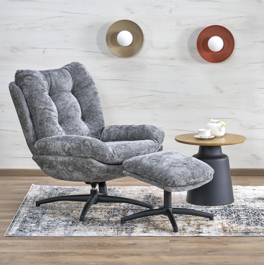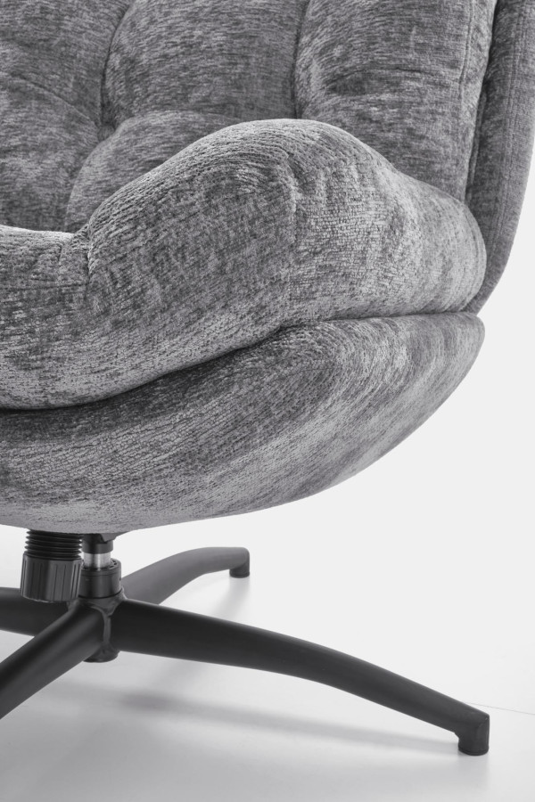 Elegantní šedá tkanina v kombinaci s černou kovovou základnou vytváří sofistikovaný kontrast. Křeslo PESTO se stane středobodem každé místnosti – ať už ho umístíte do obýváku, ložnice nebo domácí kanceláře.
