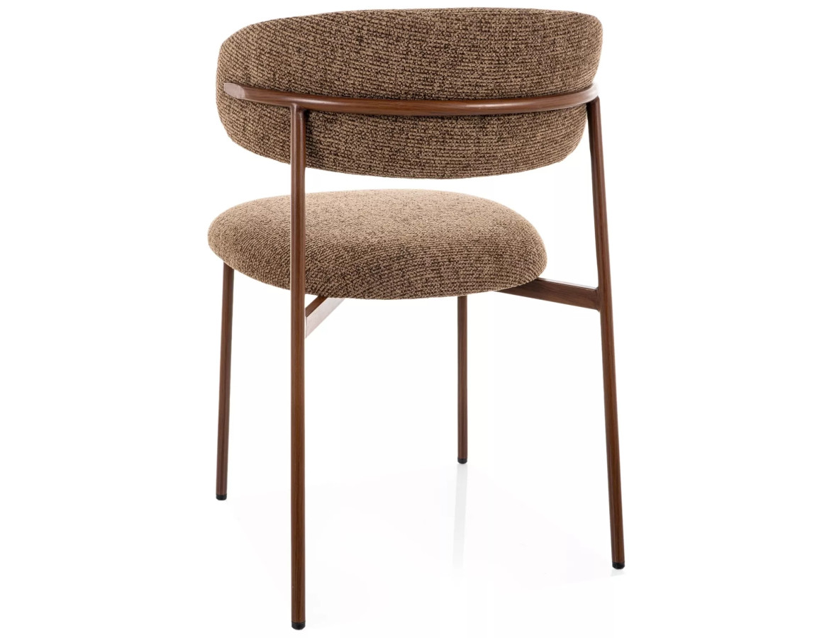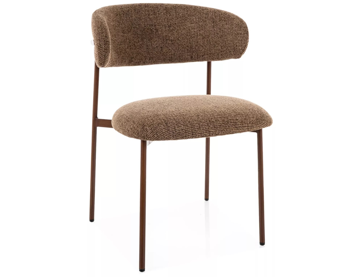 Jídelní židle ELTON okamžitě zaujme svým výrazným, a přitom harmonickým designem. Oblé, organické tvary sedáku i opěradla jsou čalouněny luxusní bouclé tkaninou v teplém odstínu cappuccino, která svou strukturovanou texturou dodává každému interiéru nádech přirozené elegance a útulnosti.