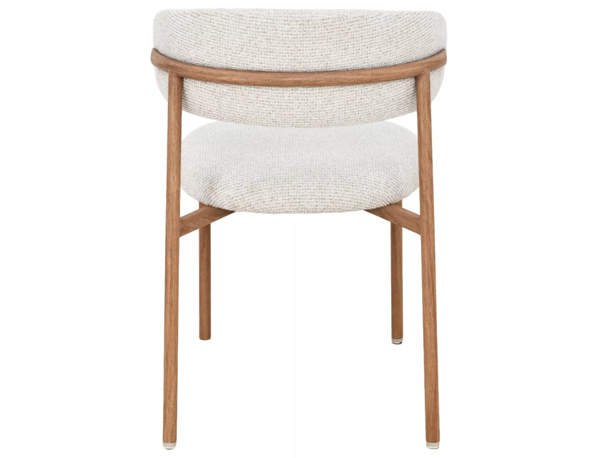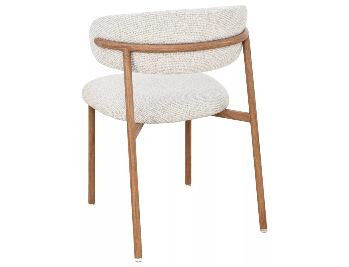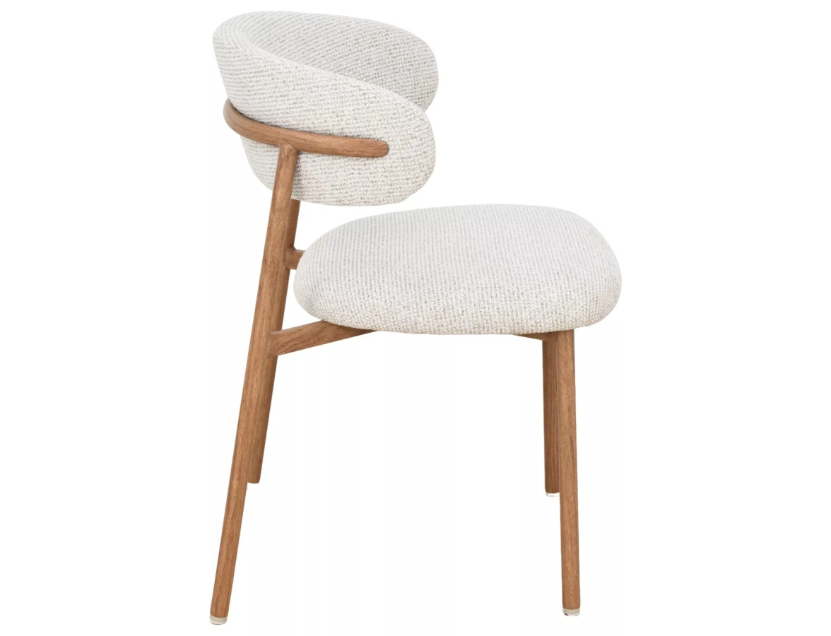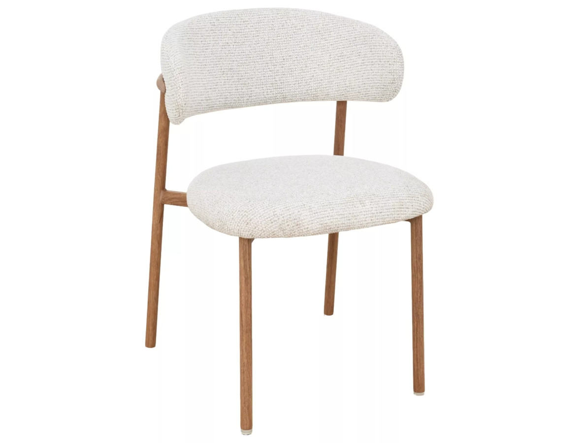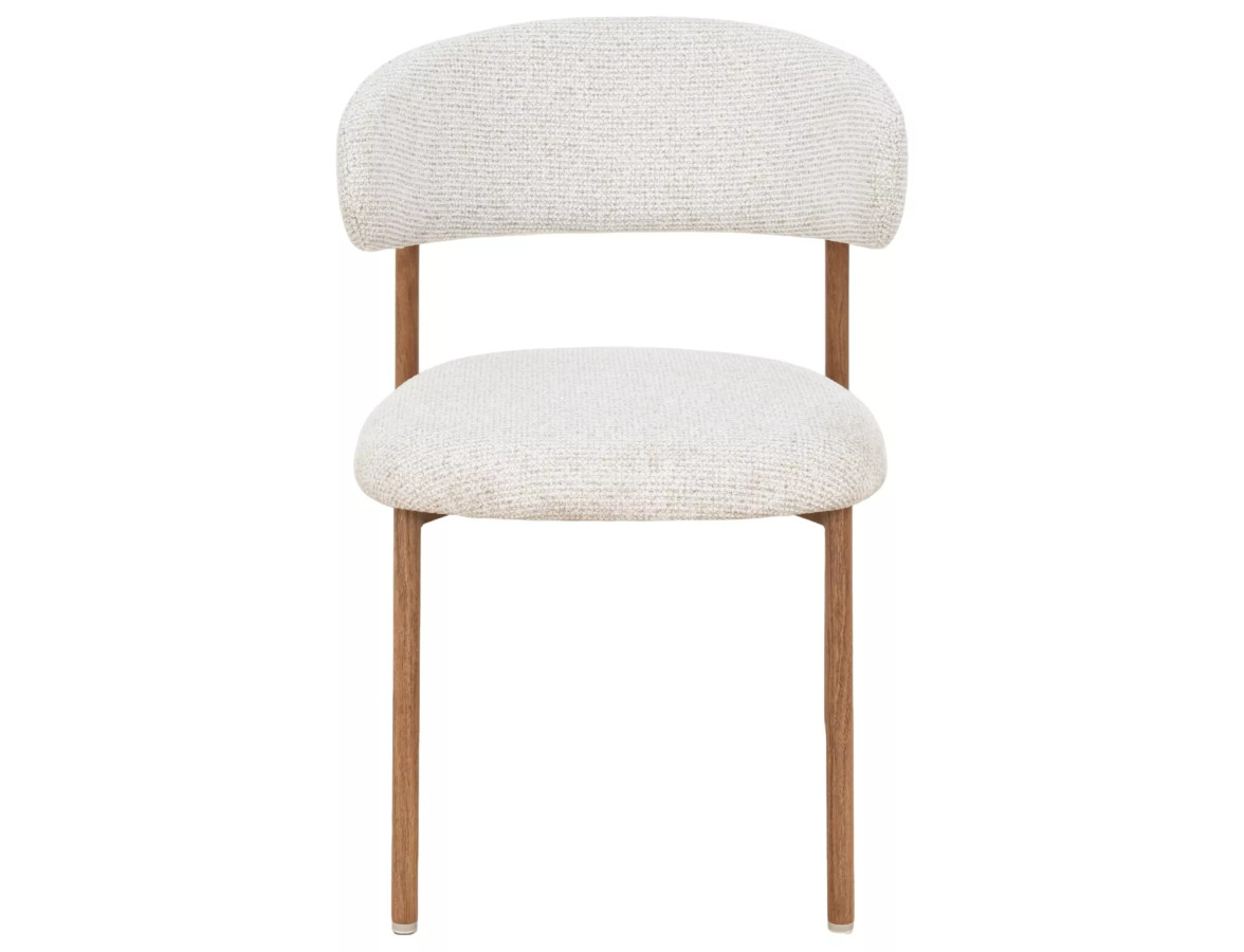 Jídelní židle ELTON II je dokonalým příkladem toho, jak může být jednoduchost krásná. Její organické, zaoblené tvary čalouněného sedáku a opěradla v kombinaci s teplým dubovým dekorem kovového rámu vytvářejí harmonický celek plný elegance a útulnosti. Odstín světle béžové s jemnou strukturou textilie dodává židli přirozený, sofistikovaný vzhled, který skvěle zapadne do každého moderního interiéru.