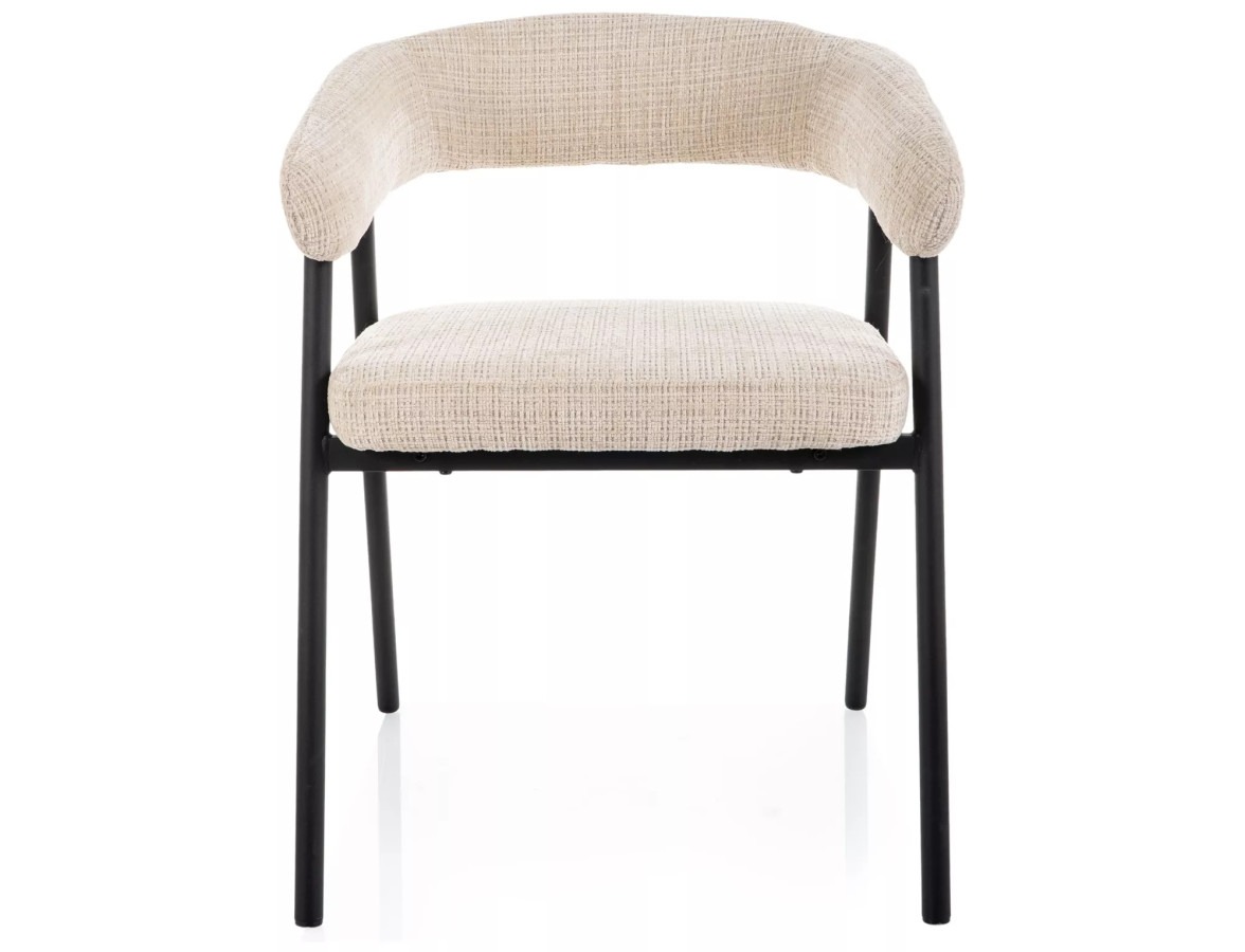 Židle KATANA je dokonalou kombinací minimalistického designu a nadčasové elegance. Její zaoblená opěrka zad s plynulými křivkami evokuje japonskou estetiku – čistotu linií, jednoduchost a preciznost. Béžový texturovaný čalouněný povrch přidává teplo a útulnost, zatímco matné černé kovové nohy dodávají celé konstrukci moderní a industriální šmrnc.