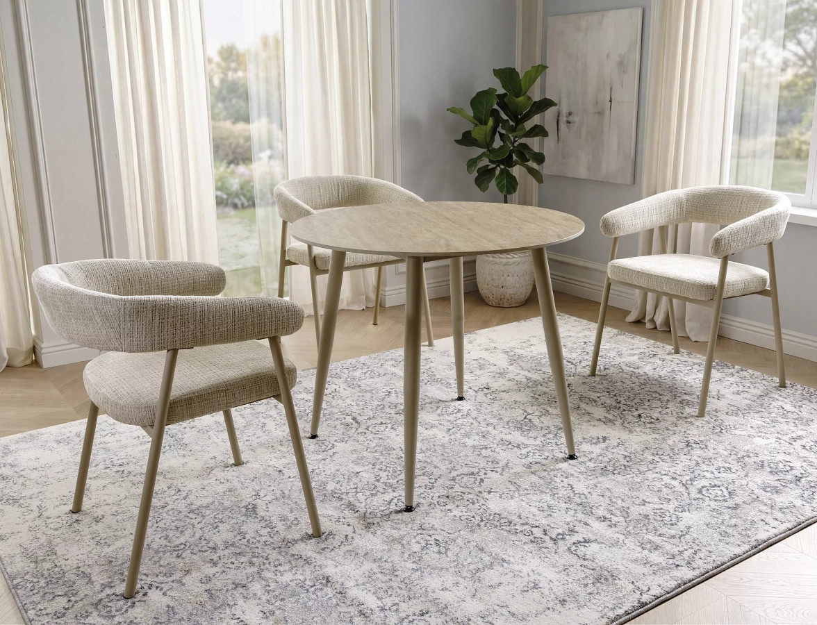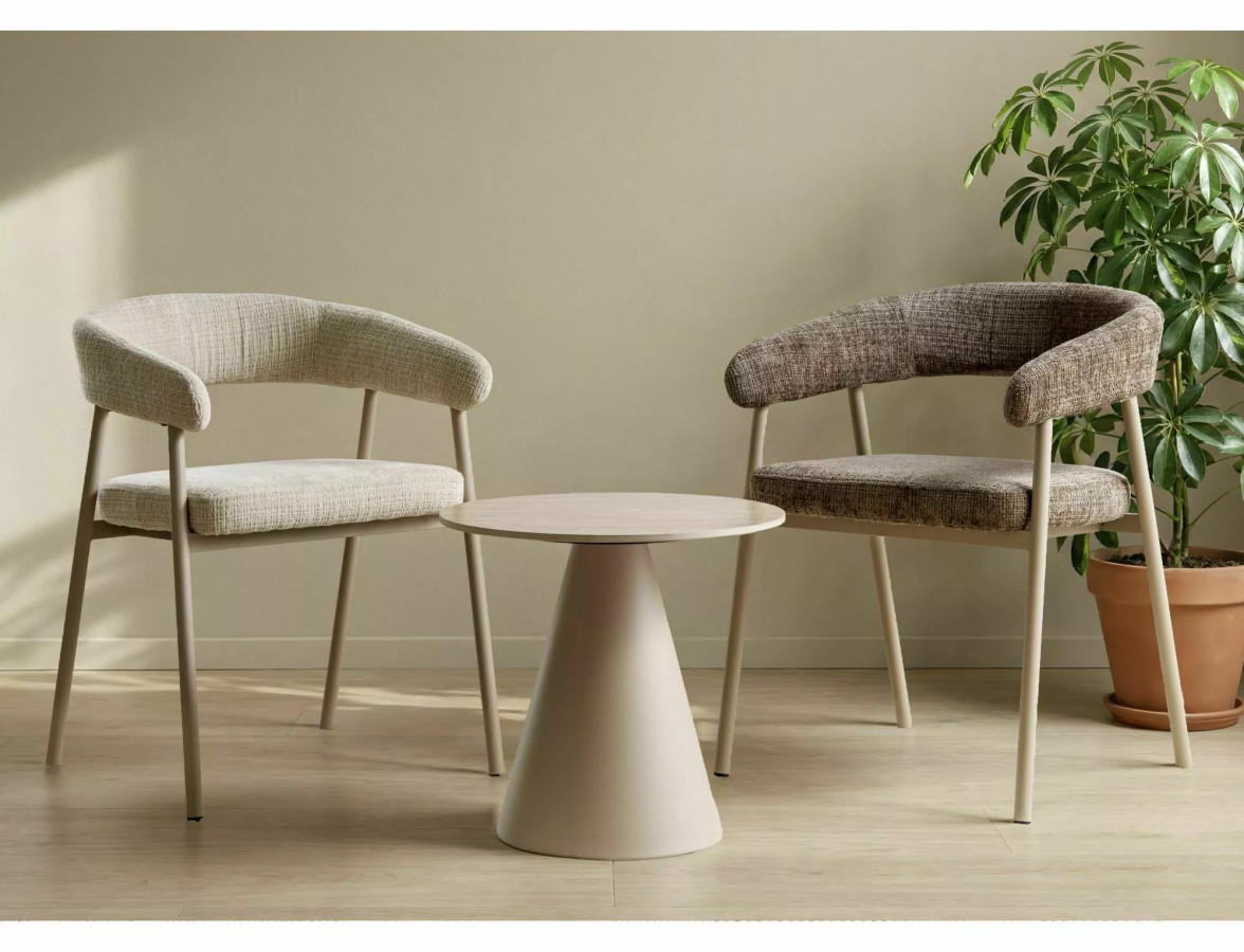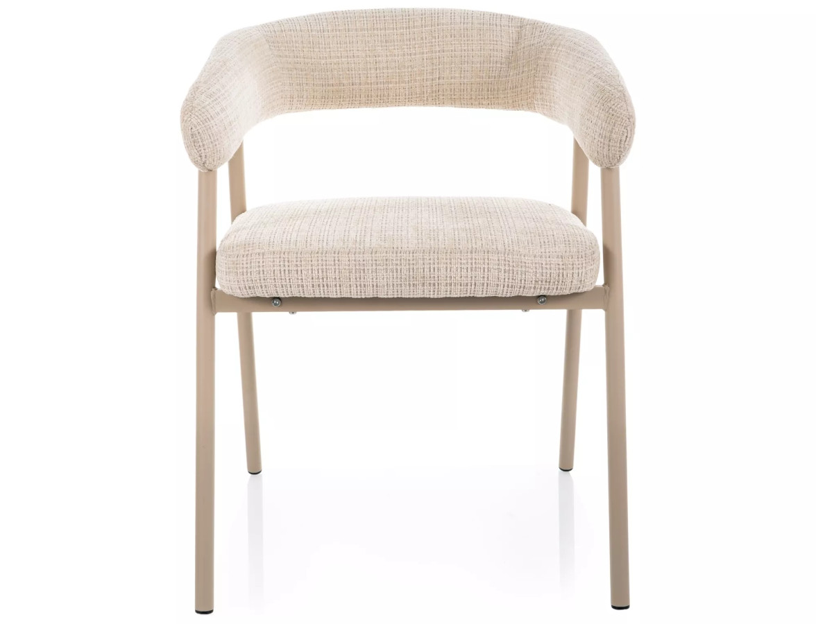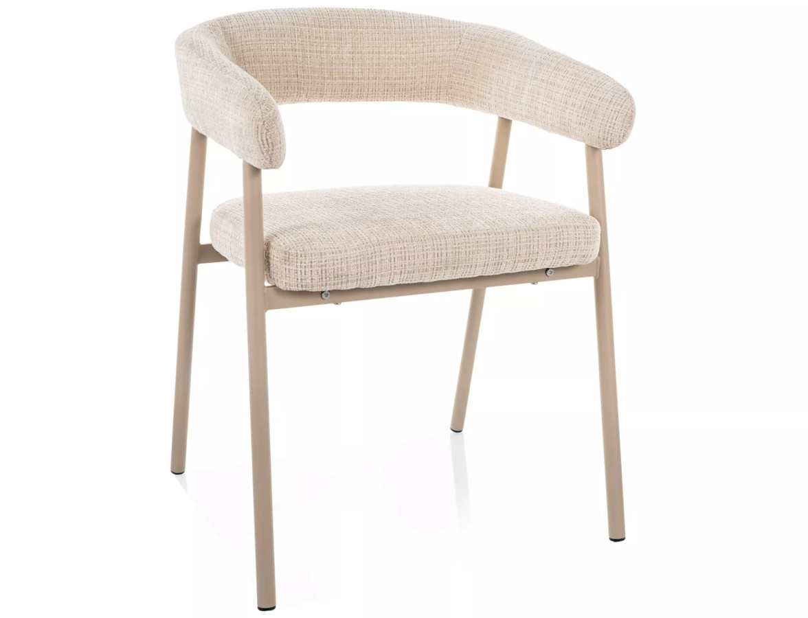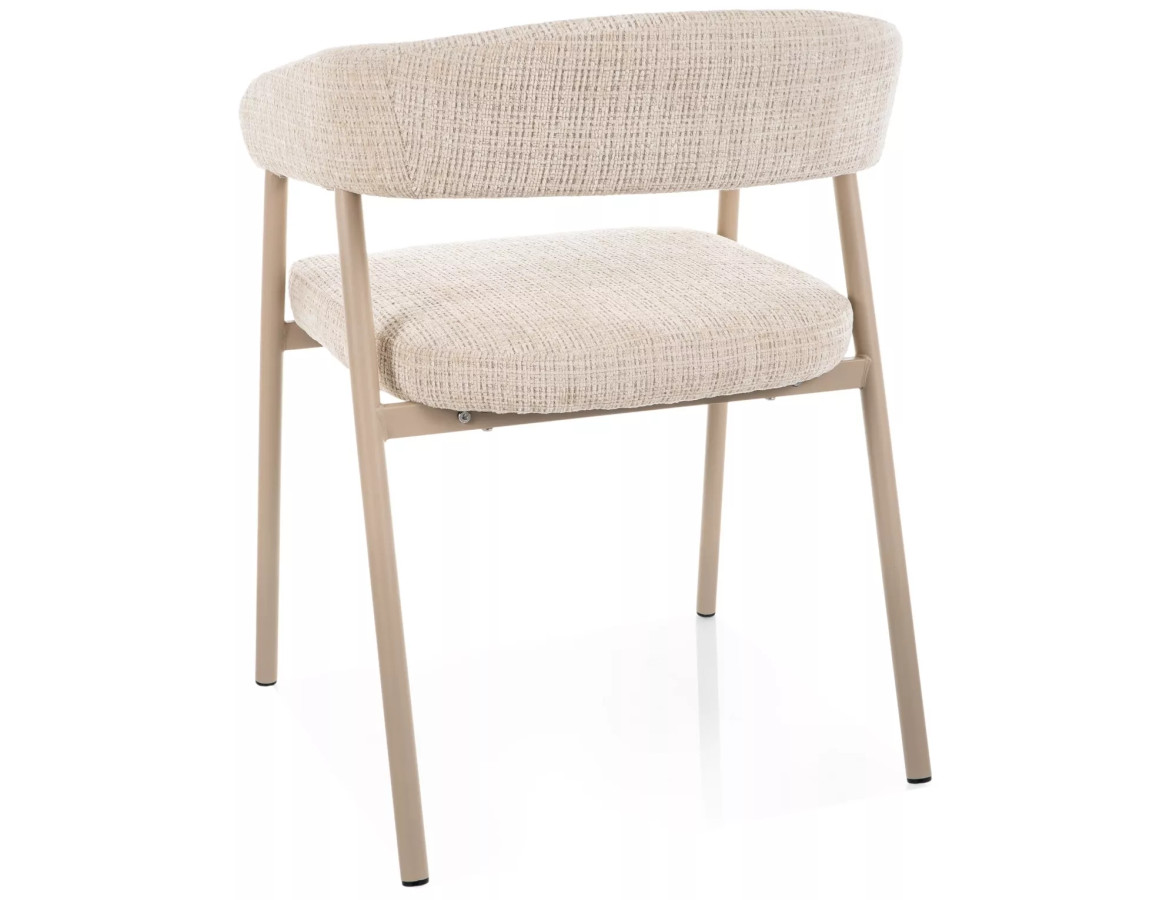 Židle KATANA je dokonalou kombinací minimalistického designu a nadčasové elegance. Její zaoblená opěrka zad s plynulými křivkami evokuje japonskou estetiku – čistotu linií, jednoduchost a preciznost. Béžový texturovaný čalouněný povrch přidává teplo a útulnost, zatímco matné černé kovové nohy dodávají celé konstrukci moderní a industriální šmrnc.