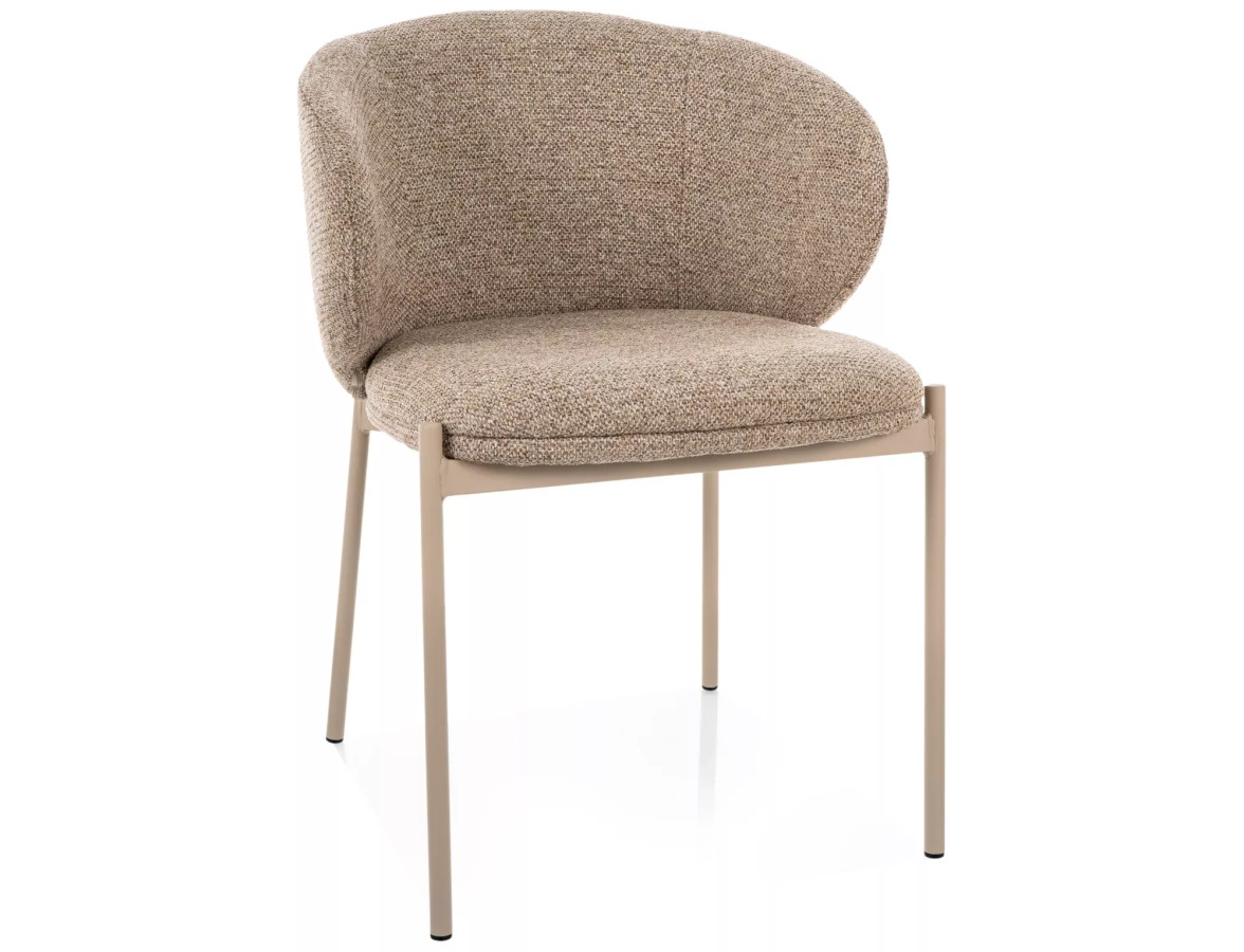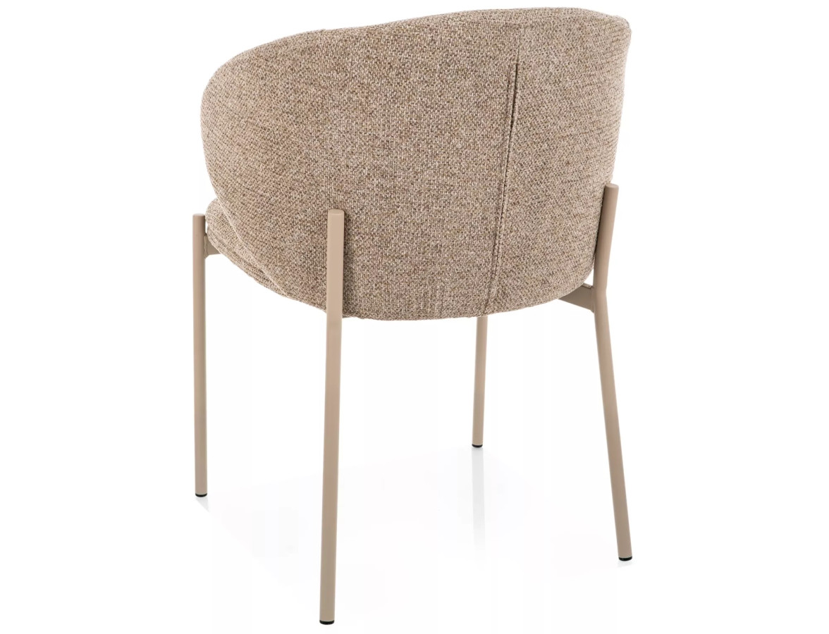 Křeslo KIOTO na vás zapůsobí hned na první pohled. Výrazná zaoblená opěrka s otevřeným zádovým profilem připomíná objetí – měkké, jisté a pohodlné. Čalounění z prémiové bouclé látky v teplém béžovém odstínu vyzařuje útulnost a sofistikovanost zároveň. Kontrastní kašmírové kovové nohy pak celé kompozici dodávají pevnost, moderní charakter a nezaměnitelný styl.