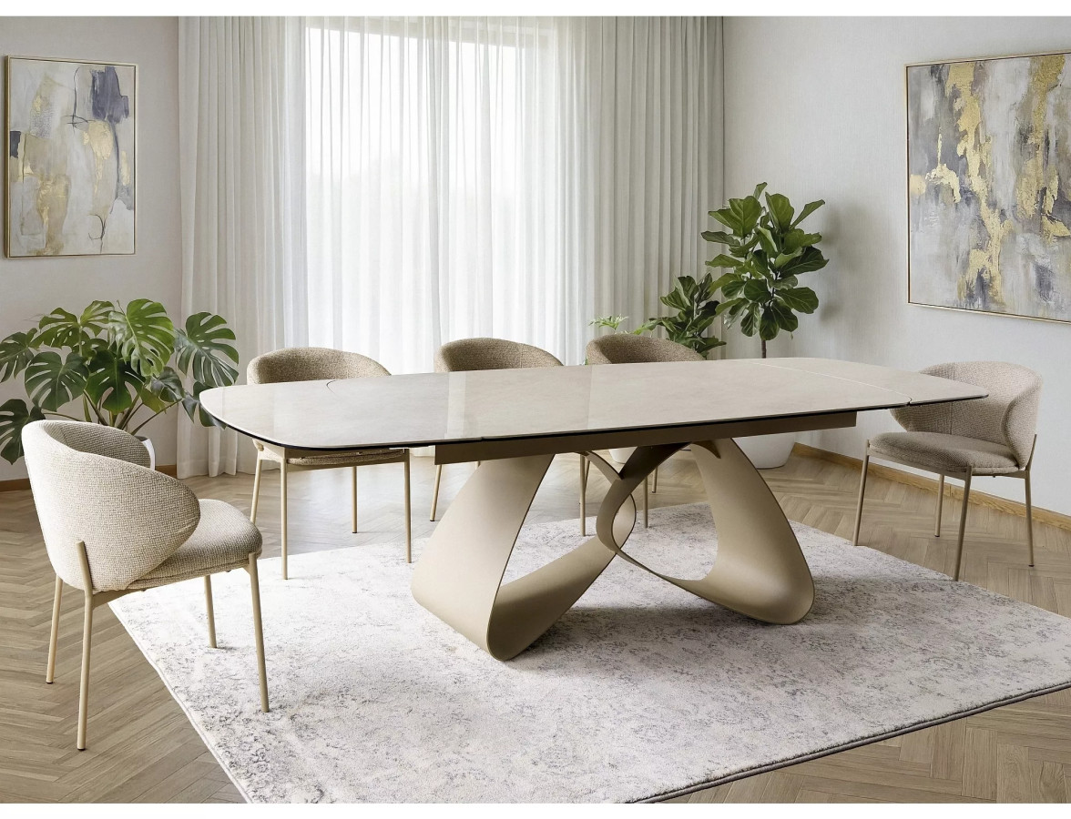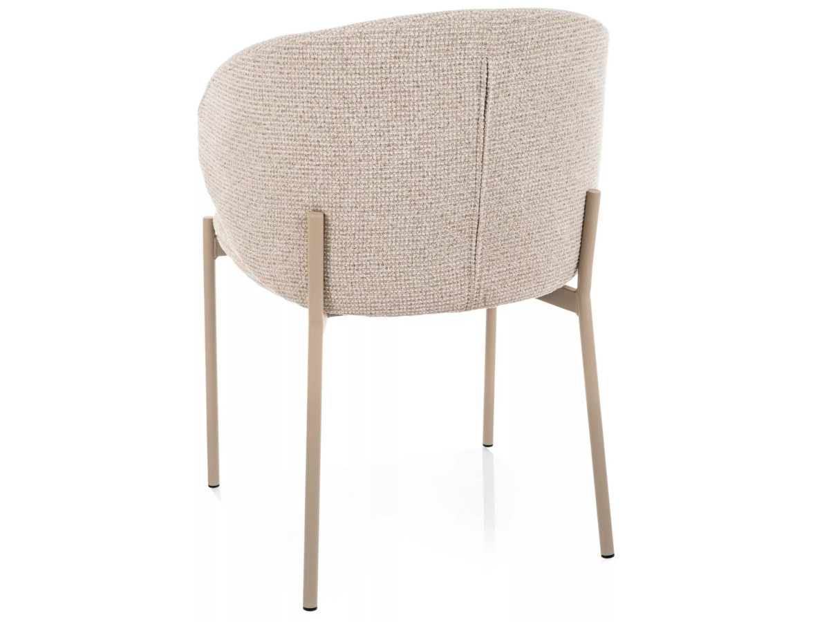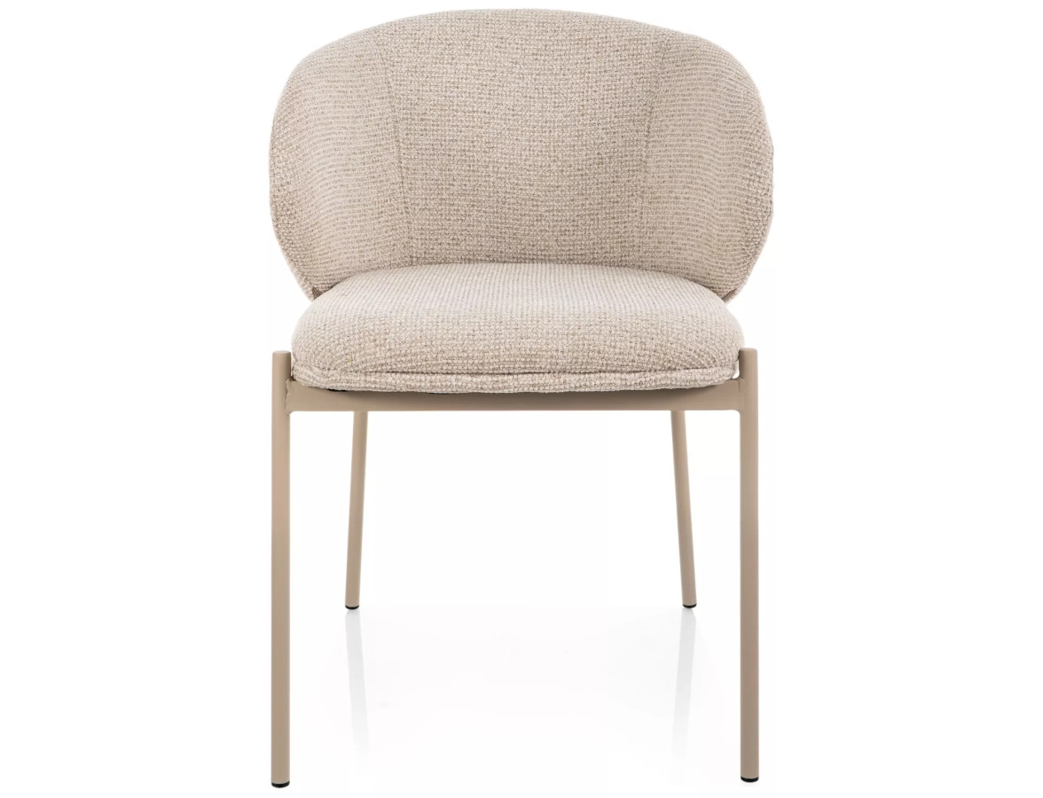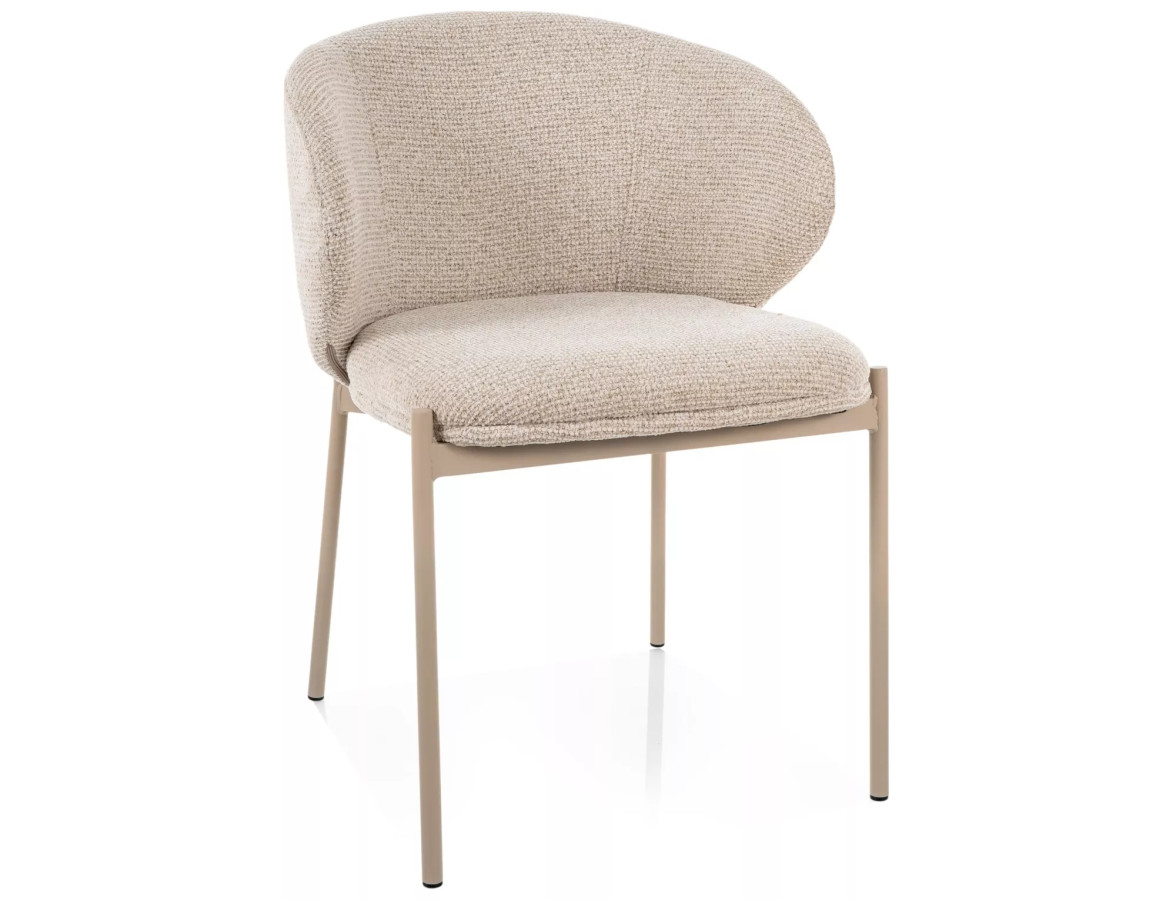 Křeslo KIOTO na vás zapůsobí hned na první pohled. Výrazná zaoblená opěrka s otevřeným zádovým profilem připomíná objetí – měkké, jisté a pohodlné. Čalounění z prémiové bouclé látky v teplém béžovém odstínu vyzařuje útulnost a sofistikovanost zároveň. Kontrastní kašmírové kovové nohy pak celé kompozici dodávají pevnost, moderní charakter a nezaměnitelný styl.