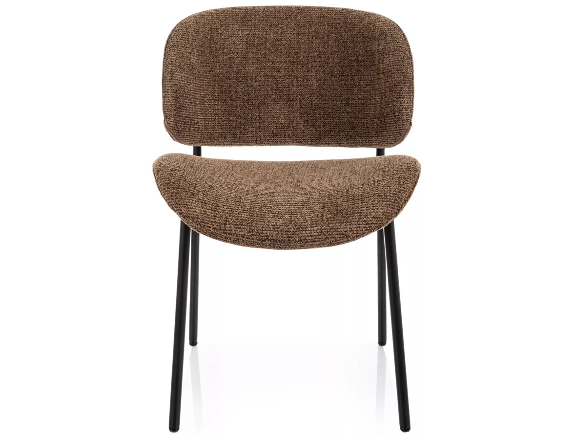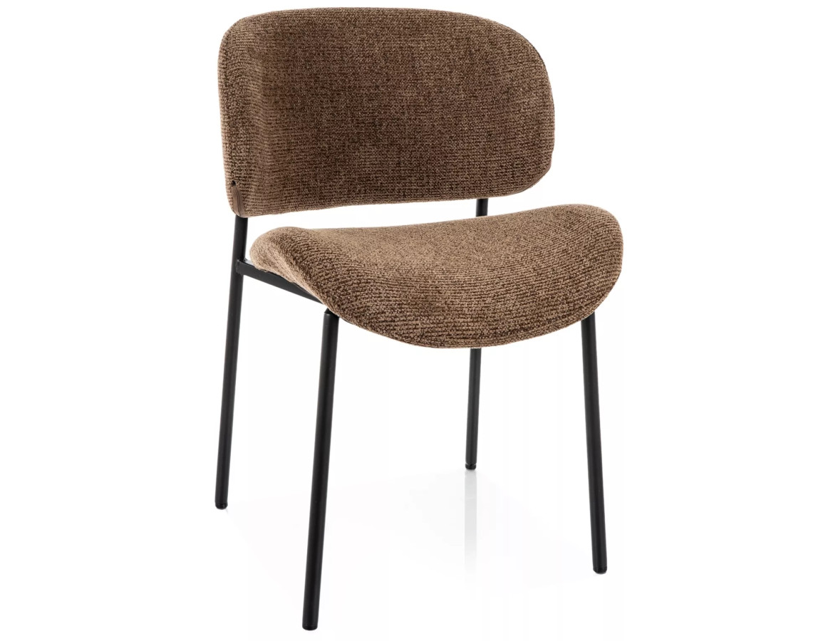 Jídelní židle KISO zaujme na první pohled svým minimalistickým a zároveň sofistikovaným designem. Měkce tvarované opěradlo a ergonomicky profilovaný sedák jsou čalouněny kvalitní strukturovanou tkaninou v teplém hnědém odstínu, která příjemně evokuje útulnost a přirozenost. Bouclé efekt textilie dodává židli jemný vizuální rozměr a příjemný haptický zážitek.