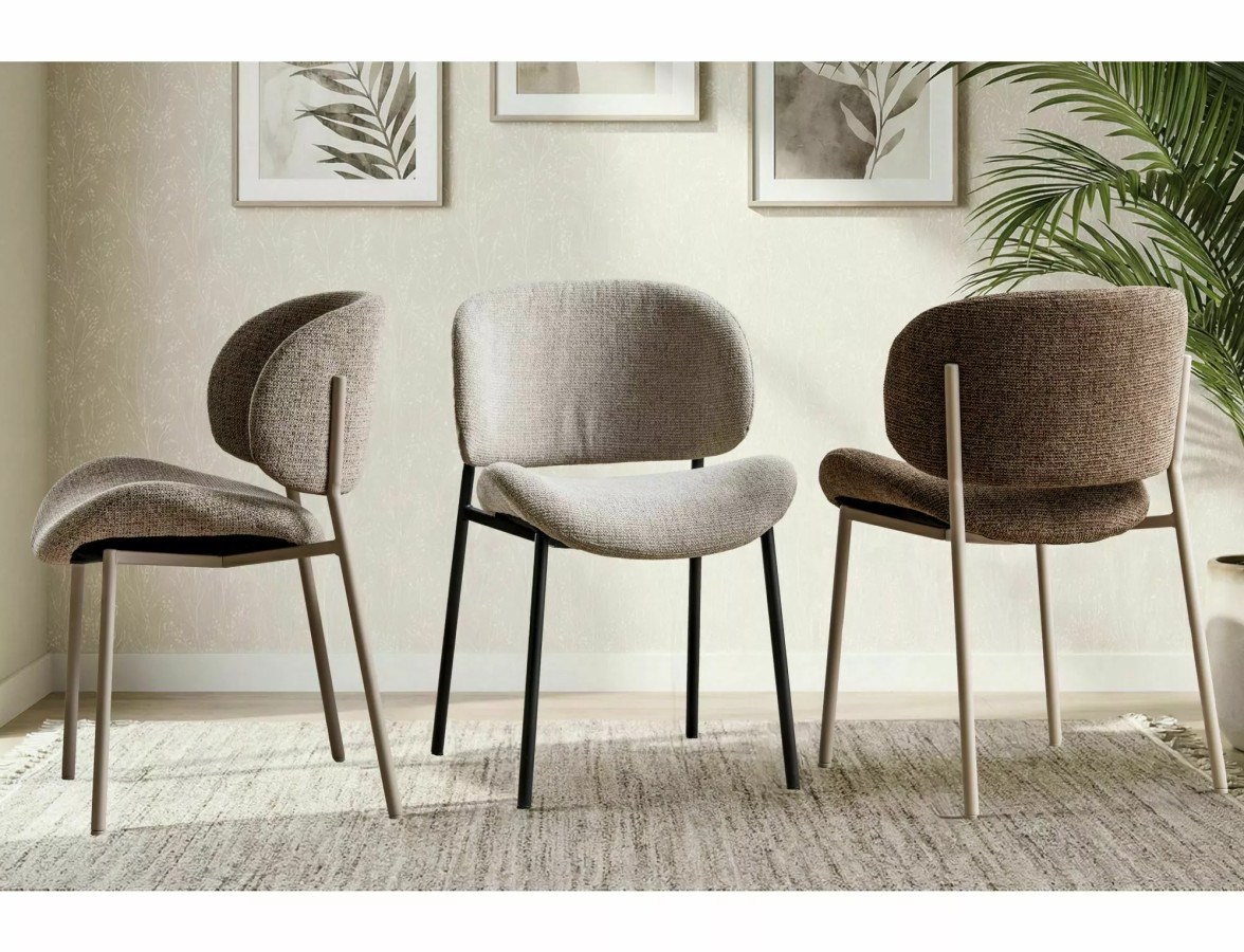 Jídelní židle KISO zaujme na první pohled svým minimalistickým a zároveň sofistikovaným designem. Měkce tvarované opěradlo a ergonomicky profilovaný sedák jsou čalouněny kvalitní strukturovanou tkaninou v teplém béžovém odstínu, která příjemně evokuje útulnost a přirozenost. Bouclé efekt textilie dodává židli jemný vizuální rozměr a příjemný haptický zážitek.