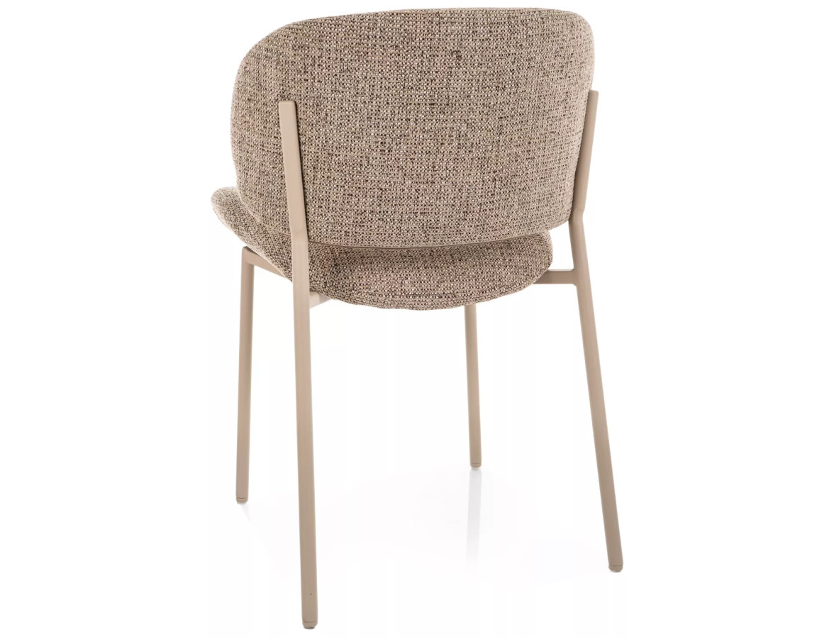 Štíhlá čtyřnohá kovová konstrukce v matně kašmírovém provedení působí vzdušně a elegantně, a přitom zajišťuje výbornou stabilitu a nosnost. Kontrast mezi teplým odstínem čalounění a kašmírovým kovem vytváří atraktivní vizuální harmonii, která se skvěle hodí do nejrůznějších interiérových stylů – od skandinávského přes industriální až po moderní.