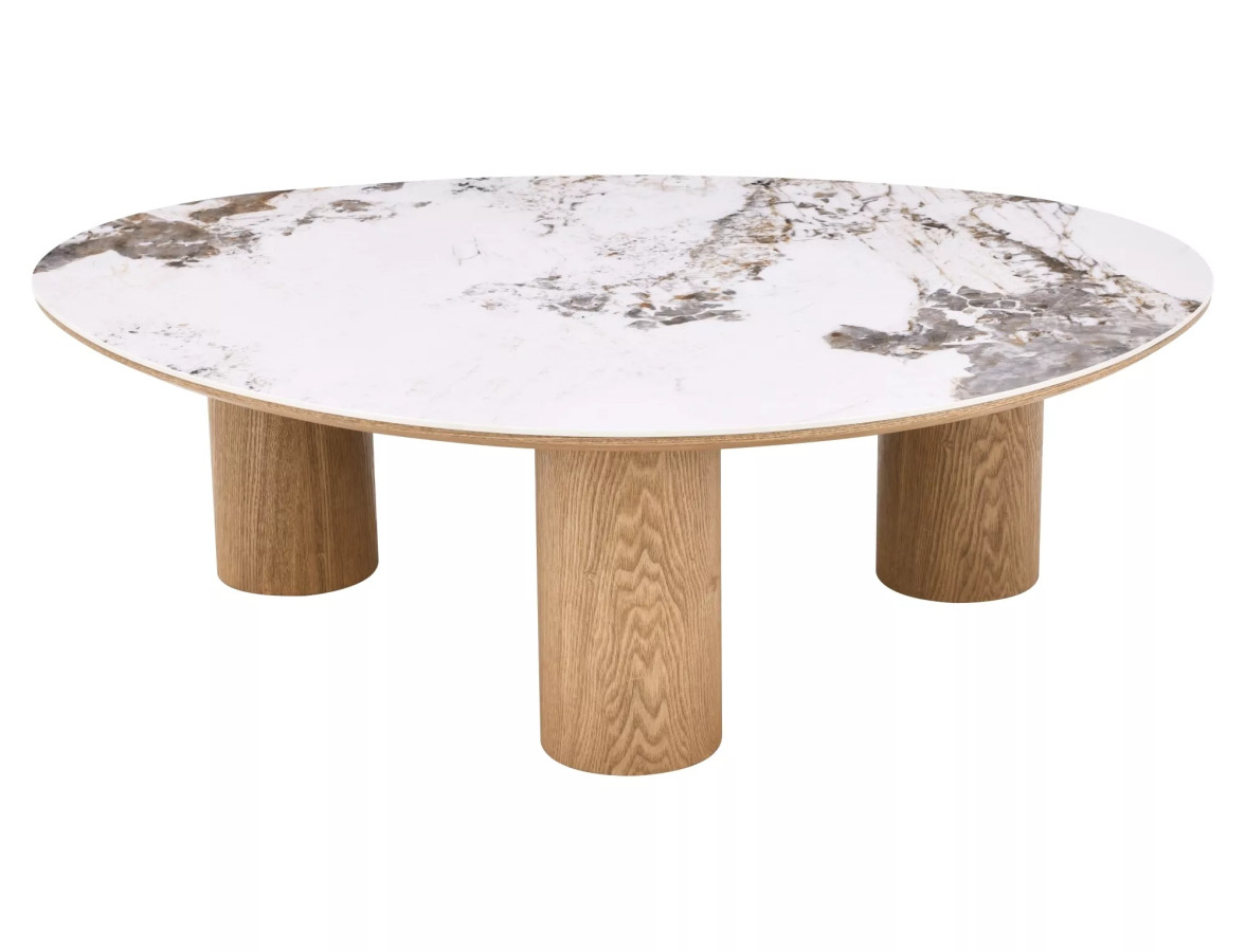 Některé kousky nábytku nepotřebují mnoho slov – prostě vstoupí do místnosti a okamžitě ji změní. Přesně tak působí konferenční stolek Adelis. Jeho kulatý tvar, luxusní keramická deska a teplá dřevěná podnož vytvářejí harmonii, která osloví každého, kdo má rád krásné věci.