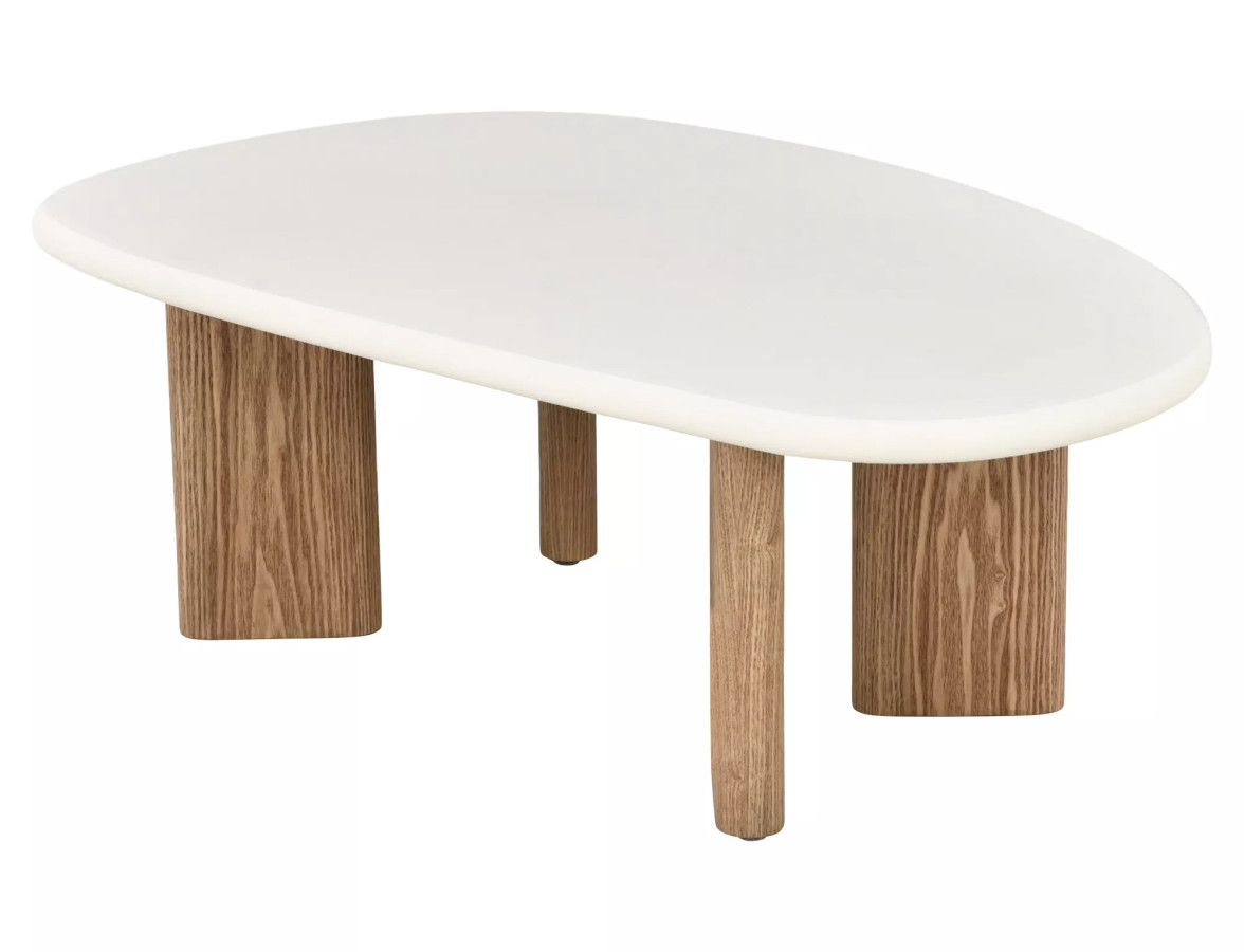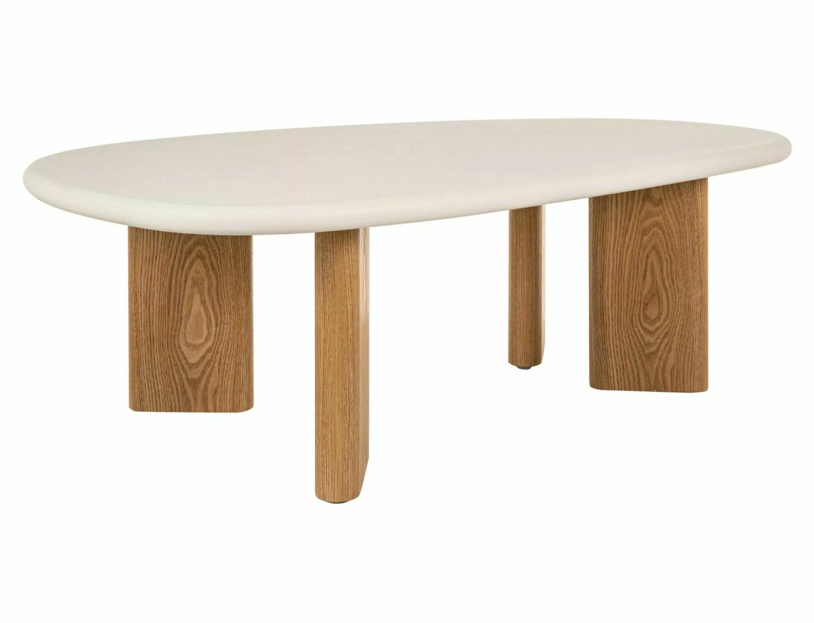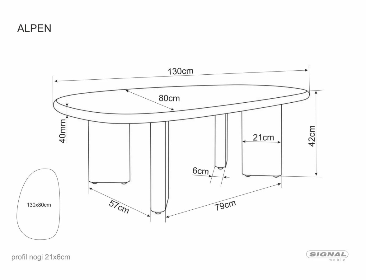 Dominantou stolu je jeho atypicky tvarovaná deska. Zapomeňte na přísné linie; ALPEN sází na jemné křivky inspirované oblázky a přírodní krajinou. Tento „organic design“ nejen skvěle vypadá, ale je také praktický – absence ostrých rohů je bezpečná pro děti a usnadňuje pohyb v menších interiérech.