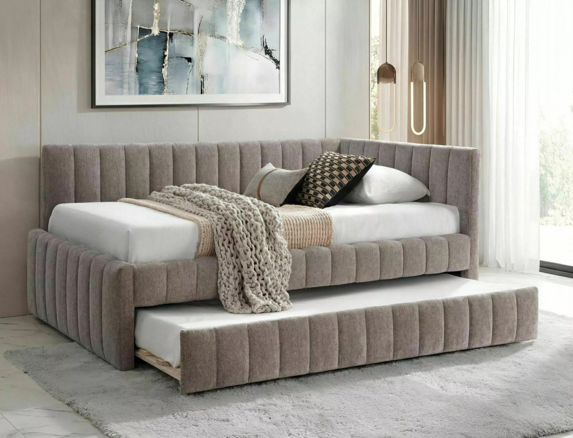 Přistýlka se snadno vysune a stejně snadno schová zpět. Denně tak využíváte prostor naplno a druhé lůžko máte připravené kdykoliv – pro návštěvu, pro děti, pro nečekané přespání.