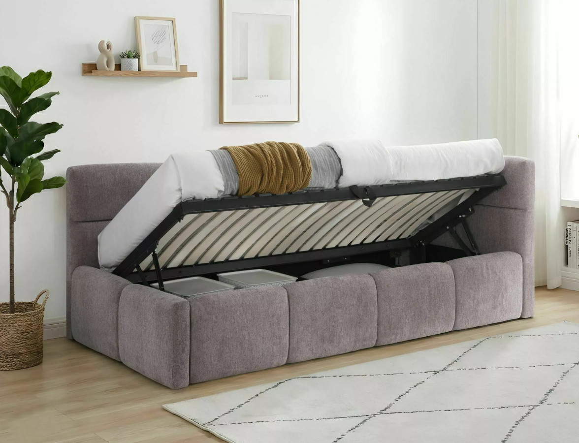 Pod celou ležnou plochou se skrývá prostorný úložný box, ke kterému se pohodlně dostanete díky plynovým pístům. Stačí jeden plynulý pohyb a rošt se sám zvedne. Žádné namáhání, žádné komplikace. Peřiny, polštáře, sezónní oblečení – vše elegantně schováte z dohledu.