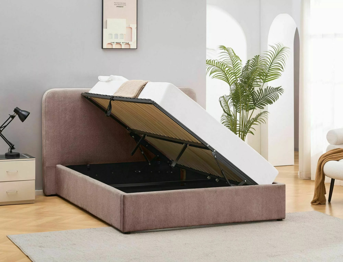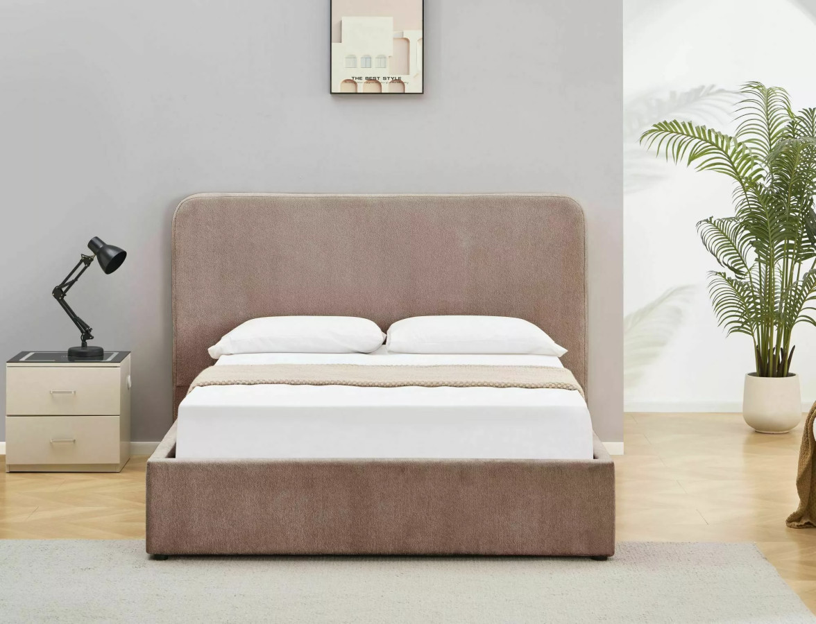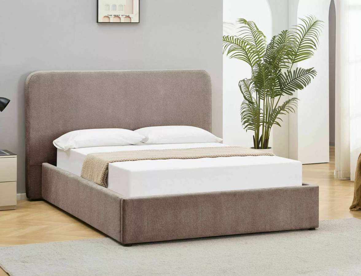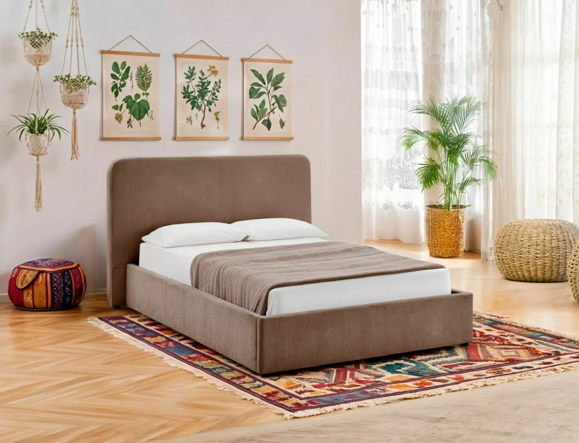 LUMIA RAVEN vyniká svým scandi-minimalistickým vzhledem. Celý rám postele je pečlivě očalouněn strukturovanou tkaninou v krémovém nebo tmavě béžovém odstínu, který vnáší do interiéru světlo a pocit čistoty.