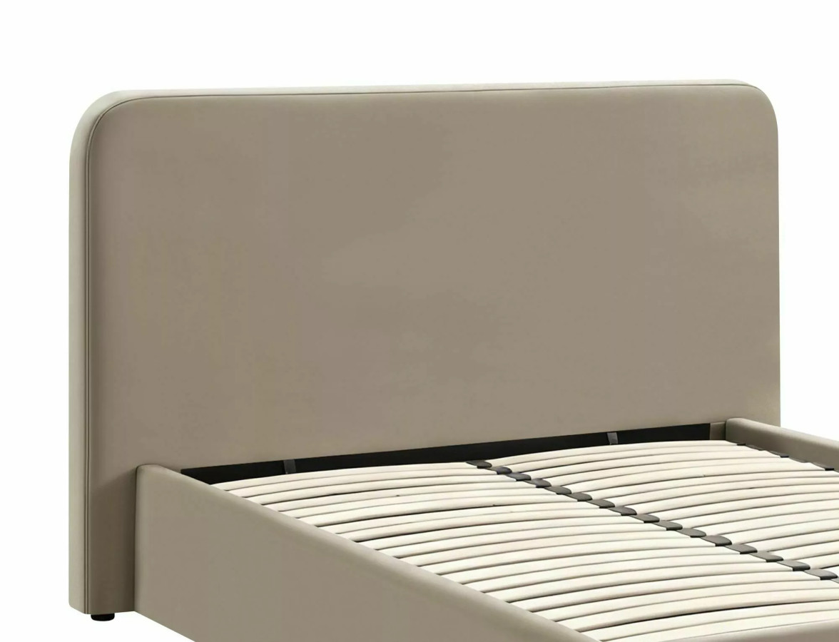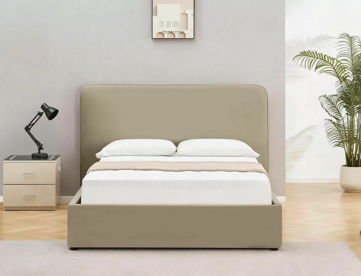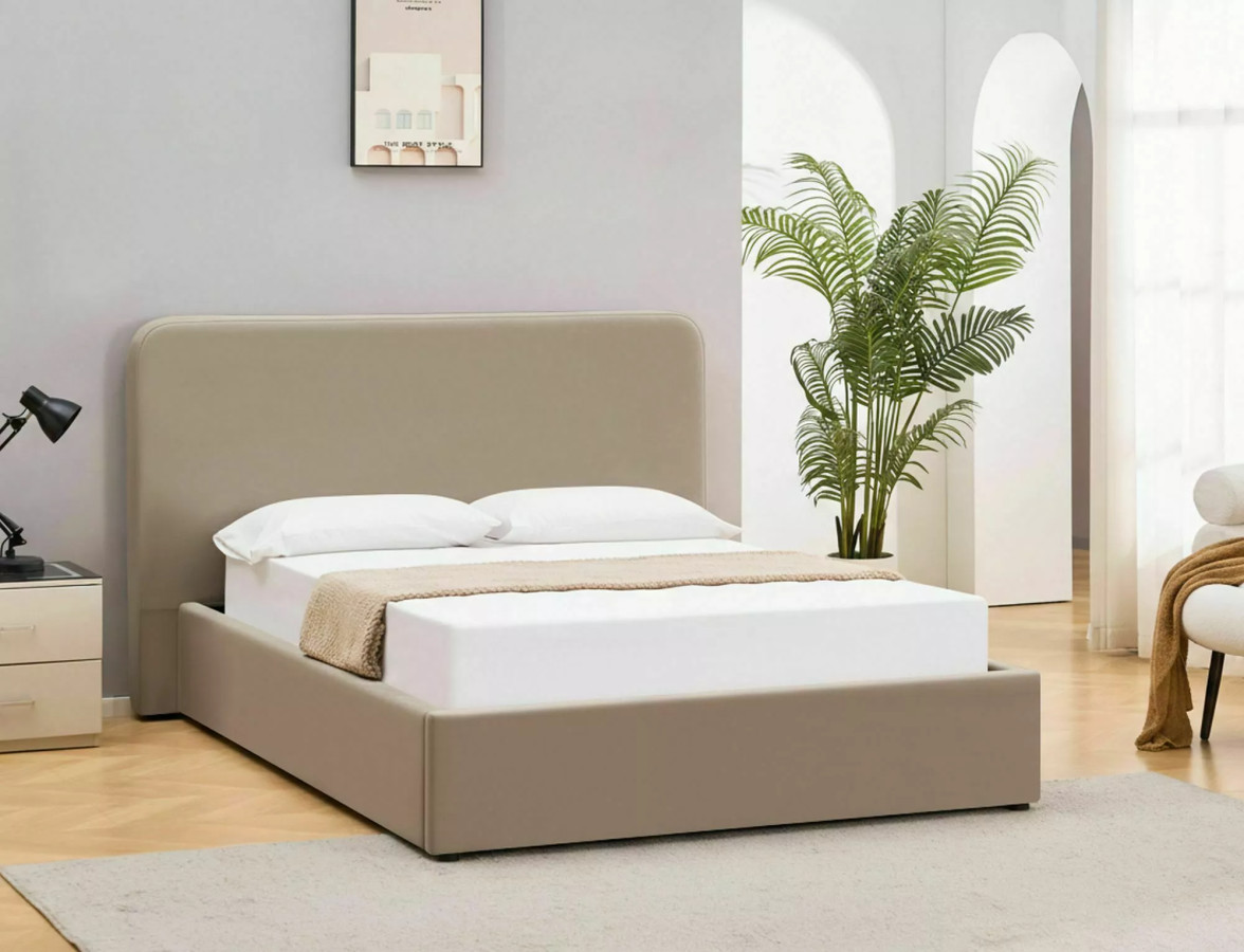 Na fotografiích můžeme obdivovat LUMIA VELVET v její plné kráse - postel je čalouněná v nádherném béžovém odstínu, který připomíná teplý písek na pláži při západu slunce. Tento neutrální, ale zároveň hřejivý tón vytváří v ložnici atmosféru klidu a relaxace, kterou si každý z nás po hektickém dni zaslouží. Celkový vzhled postele je charakteristický svými měkce zaoblenými rohy a čistými liniemi, které dokonale ztělesňují současné trendy v oblasti interiérového designu.