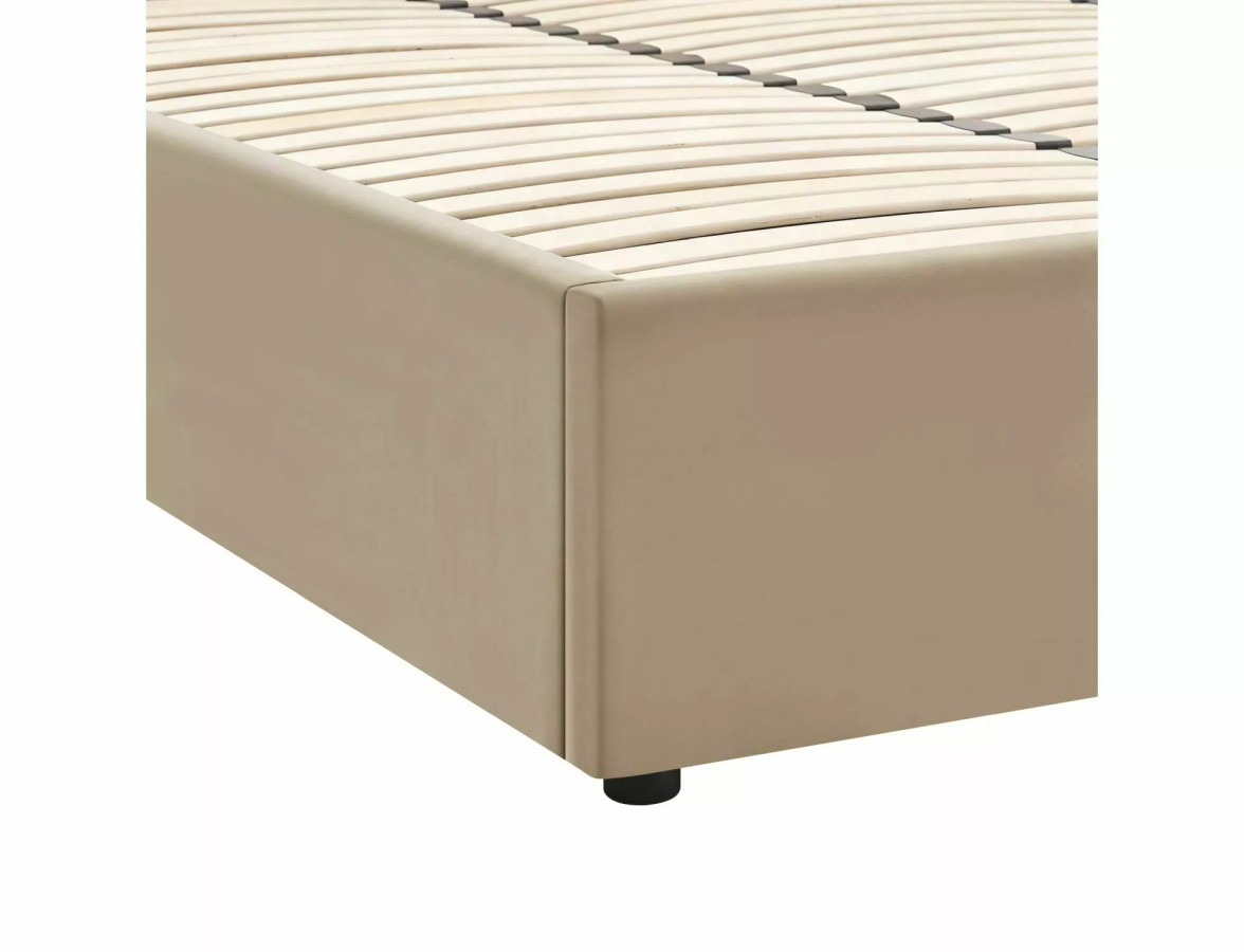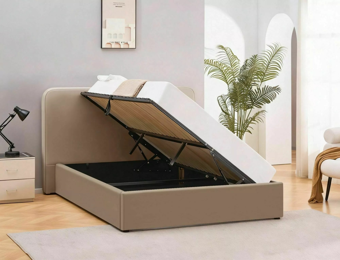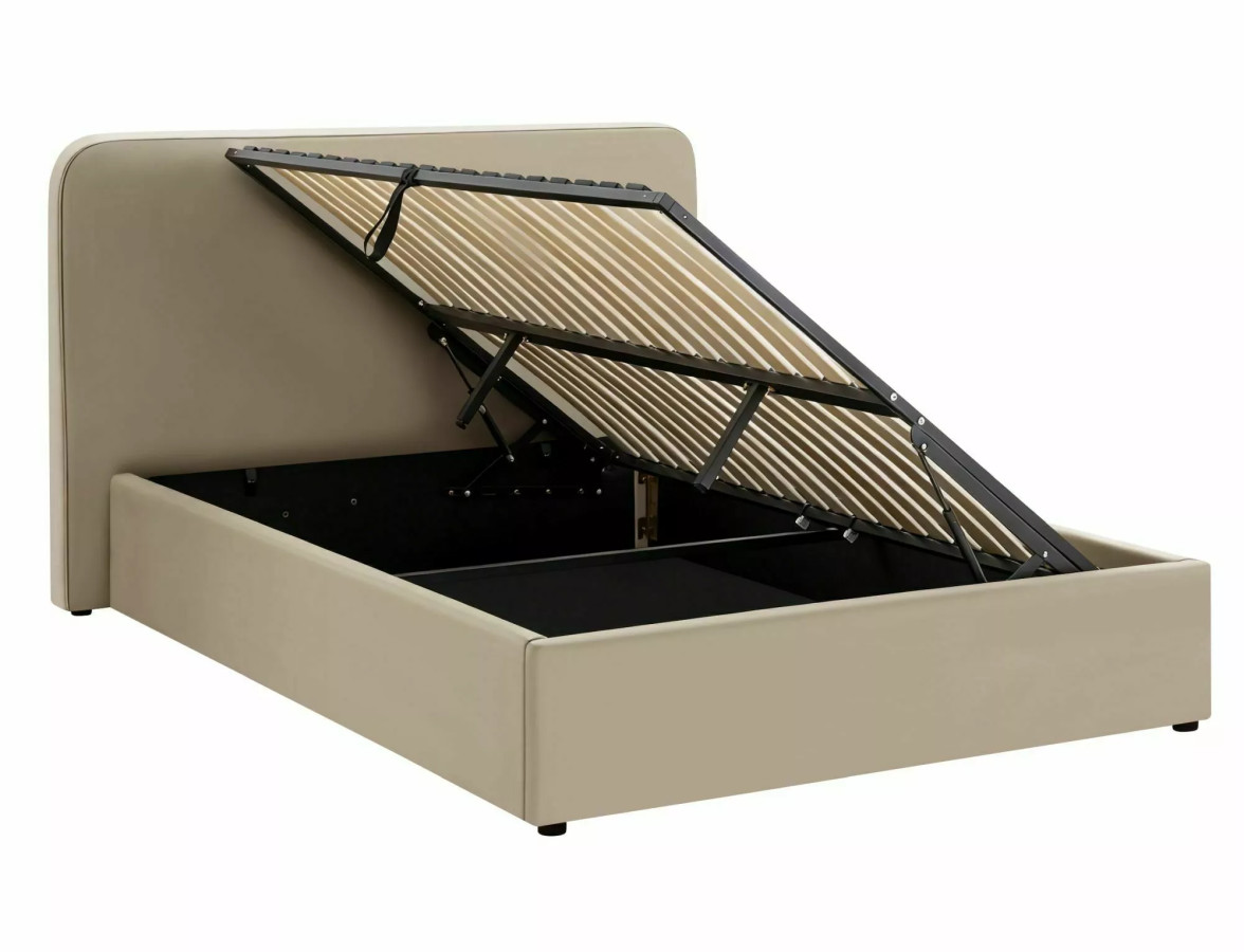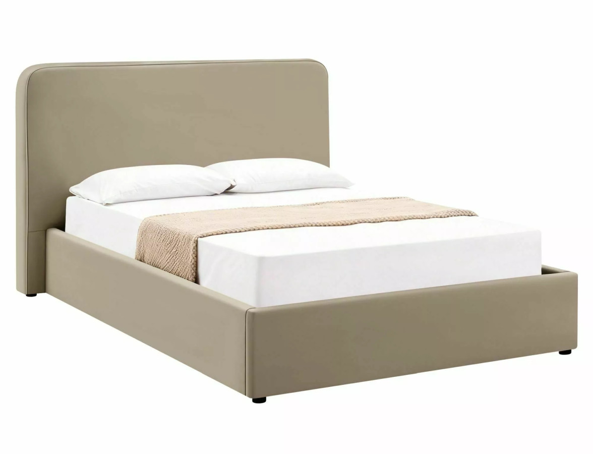 Na fotografiích můžeme obdivovat LUMIA VELVET v její plné kráse - postel je čalouněná v nádherném béžovém odstínu, který připomíná teplý písek na pláži při západu slunce. Tento neutrální, ale zároveň hřejivý tón vytváří v ložnici atmosféru klidu a relaxace, kterou si každý z nás po hektickém dni zaslouží. Celkový vzhled postele je charakteristický svými měkce zaoblenými rohy a čistými liniemi, které dokonale ztělesňují současné trendy v oblasti interiérového designu.