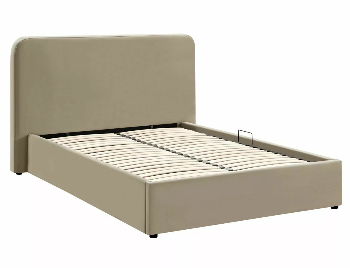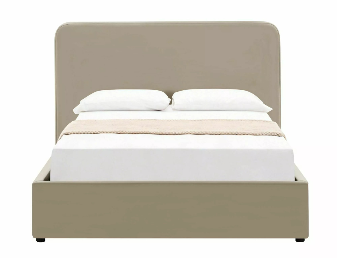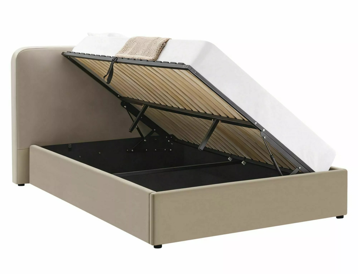 Na fotografiích můžeme obdivovat LUMIA VELVET v její plné kráse - postel je čalouněná v nádherném béžovém odstínu, který připomíná teplý písek na pláži při západu slunce. Tento neutrální, ale zároveň hřejivý tón vytváří v ložnici atmosféru klidu a relaxace, kterou si každý z nás po hektickém dni zaslouží. Celkový vzhled postele je charakteristický svými měkce zaoblenými rohy a čistými liniemi, které dokonale ztělesňují současné trendy v oblasti interiérového designu.