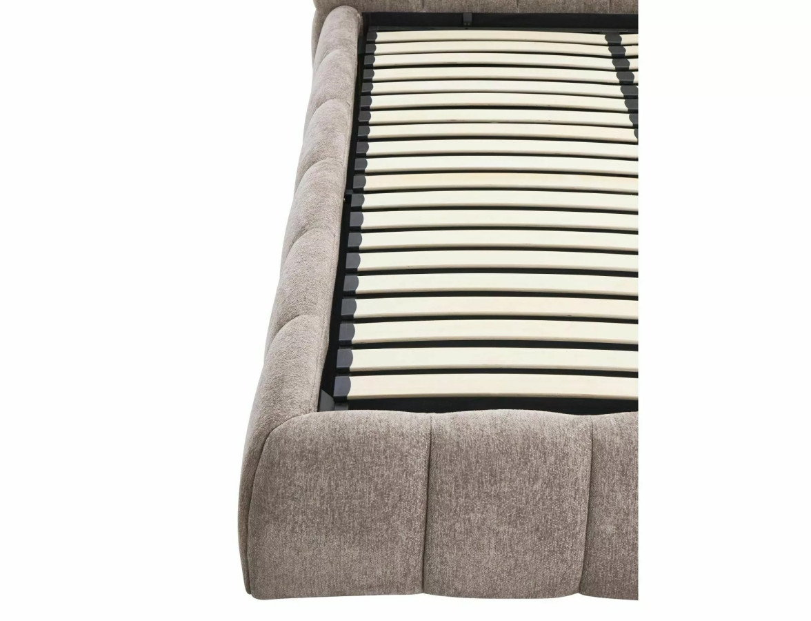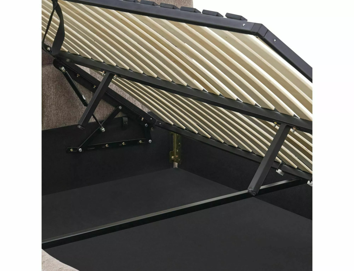 Pod ložnou plochou se skrývá prostorný úložný box. Peřiny, polštáře, povlečení, deky na zimu – všechno zmizí z dohledu a ložnice zůstane uklizená. Otevírání zajišťují plynové vzpěry, takže zvednete rošt jedním plynulým pohybem, bez námahy.
