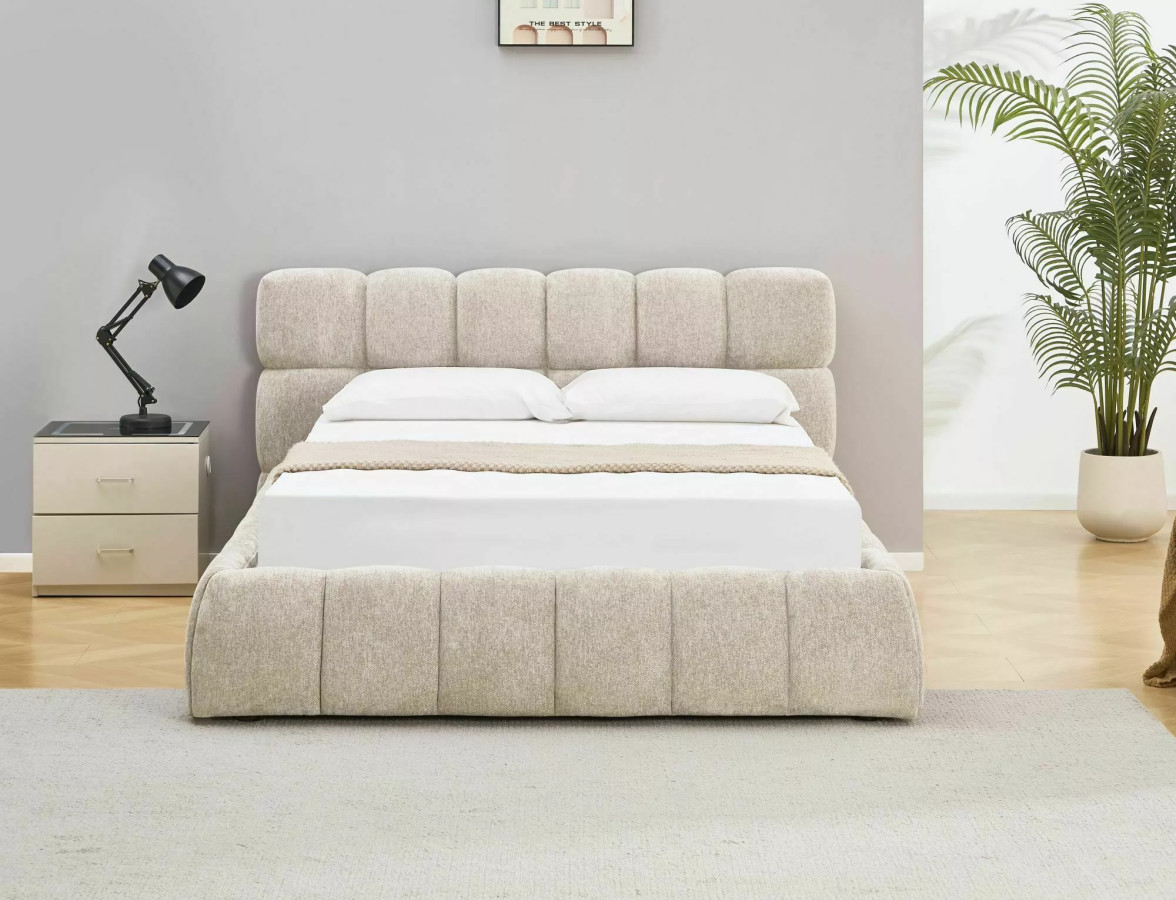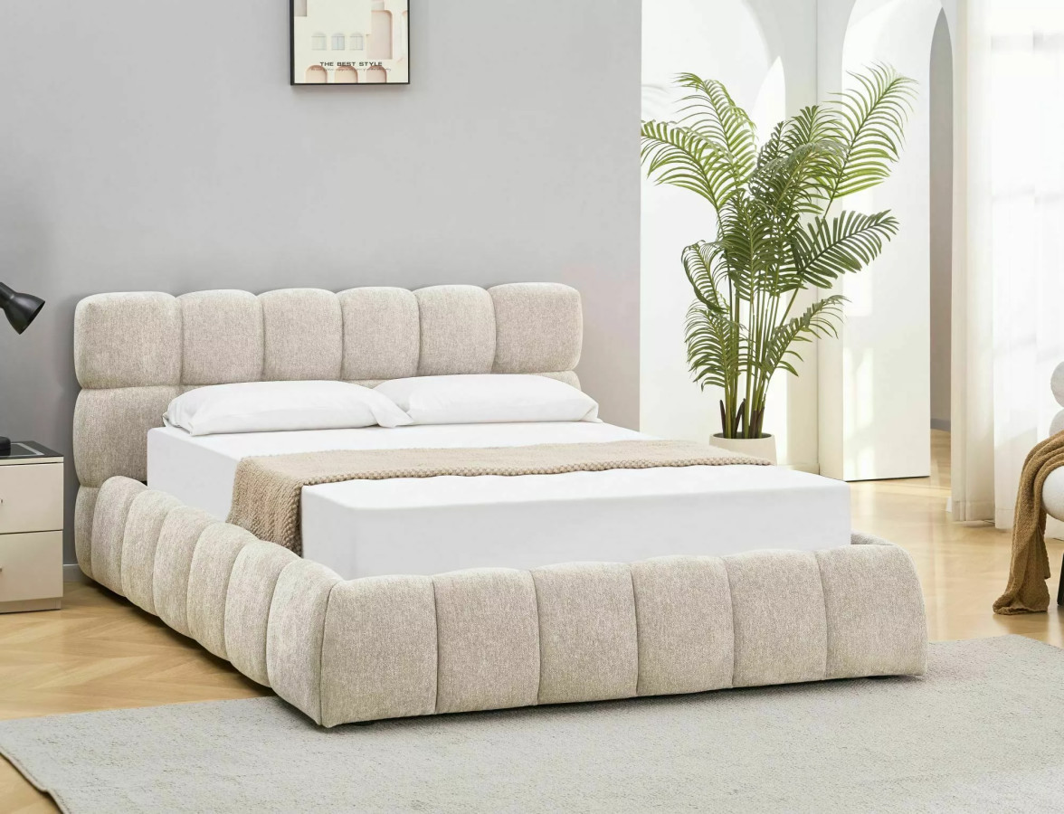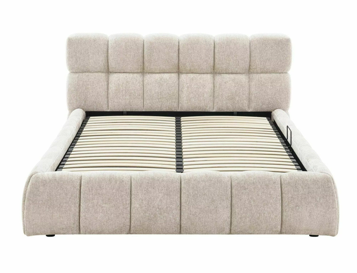 Elegantní čalouněná postel v nadčasovém béžovém odstínu látky Raven okamžitě povýší vzhled celé vaší ložnice. Jemná strukturovaná tkanina je příjemná na dotek a snadno se udržuje.