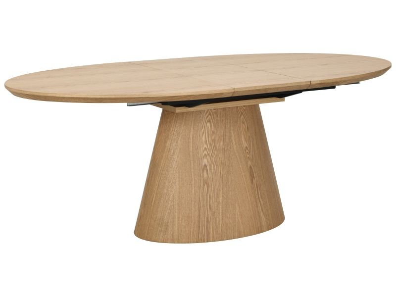 Elegantní rozkládací jídelní stůl MAROCCO z masivního dubu zaujme na první pohled svým nadčasovým designem a precizním zpracováním. Oválná deska v kombinaci s originální kuželovou podnoží vytváří harmonický celek, který se stane dominantou každé jídelny či moderního obývacího prostoru.