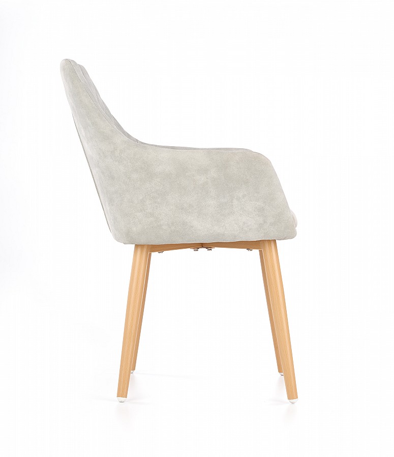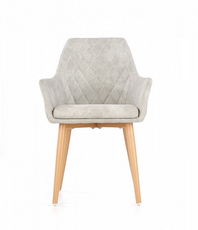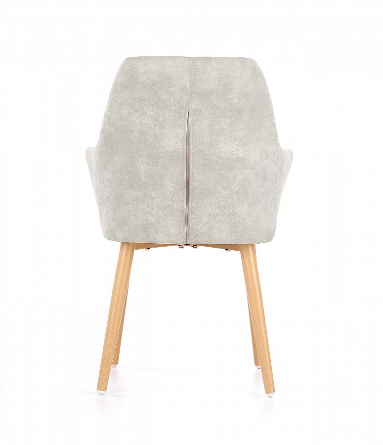 Křesílko K287 je atraktivní židle čalouněná šedou ekokůží, s pohodlnými područkami, o které si můžeme volně opřít ruce a uvolnit své tělo. Čalounění z ekokůže se snadno udržuje v čistotě, lze jej rychle vyčistit a působí velmi elegantně. Nohy židle jsou vyrobeny z lakované oceli, imitující barvu dřeva. Ozdobné prošívání na opěradle dodává židli atraktivní vzhled a pohodlný sedák zajišťuje pohodlí při používání. Plastové konce nohou zabraňují poškrábání podlahy. Židle K287 je ideální variantou pro lidi, kteří oceňují jedinečné produkty, svým designem odkazuje k modernímu retro stylu. Skvěle se bude hodit na stůl v jídelně nebo obývacím pokoji a poskytne maximální pohodlí při stolování s rodinou. Židli vám dodáme v demontu.
