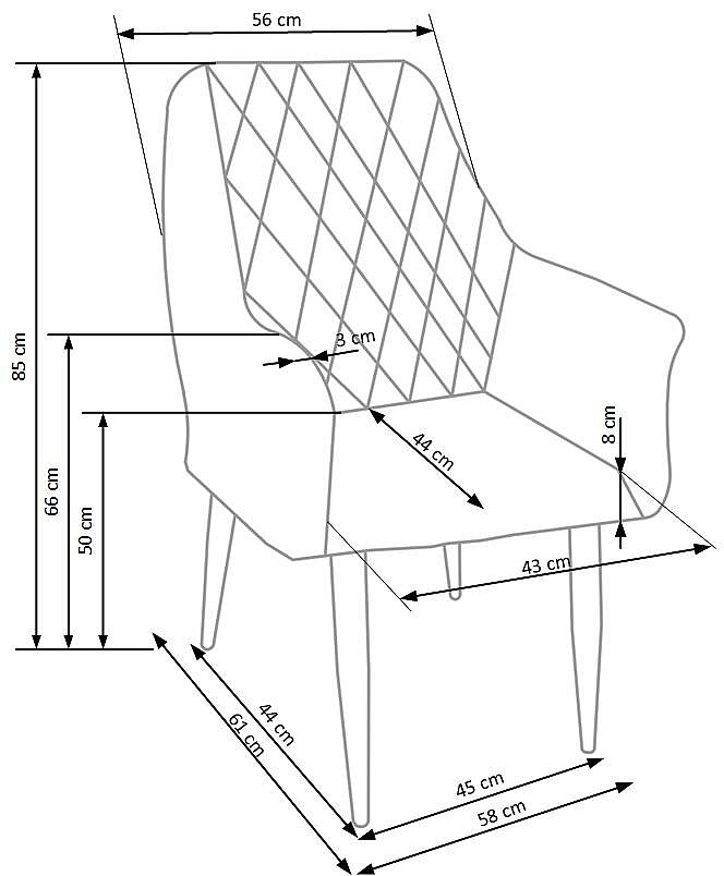 Ozdobné prošívání na opěradle dodává K287 charakter a šmrnc. Moderní retro styl, který okamžitě povýší vzhled vaší jídelny nebo obývacího pokoje.