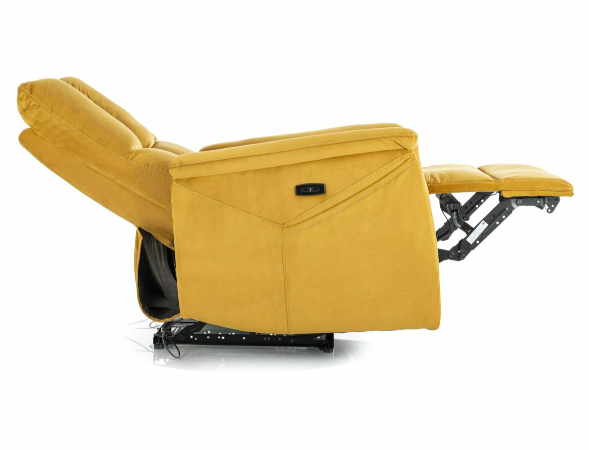 • relaxační křeslo umožňuje pomocí ovladače vysunout opěrku nohou a snížit zádovou opěrku do polo ležící pozice