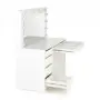 Velkorysé zrcadlo je královským centrem stolku. Už žádné sklánění se nad malými zrcátky ani improvizace na parapetu. Dívejte se na sebe, sledujte proměny, věnujte si čas. Protože každá žena si zaslouží chvíli, kdy je středem pozornosti – sama sobě.